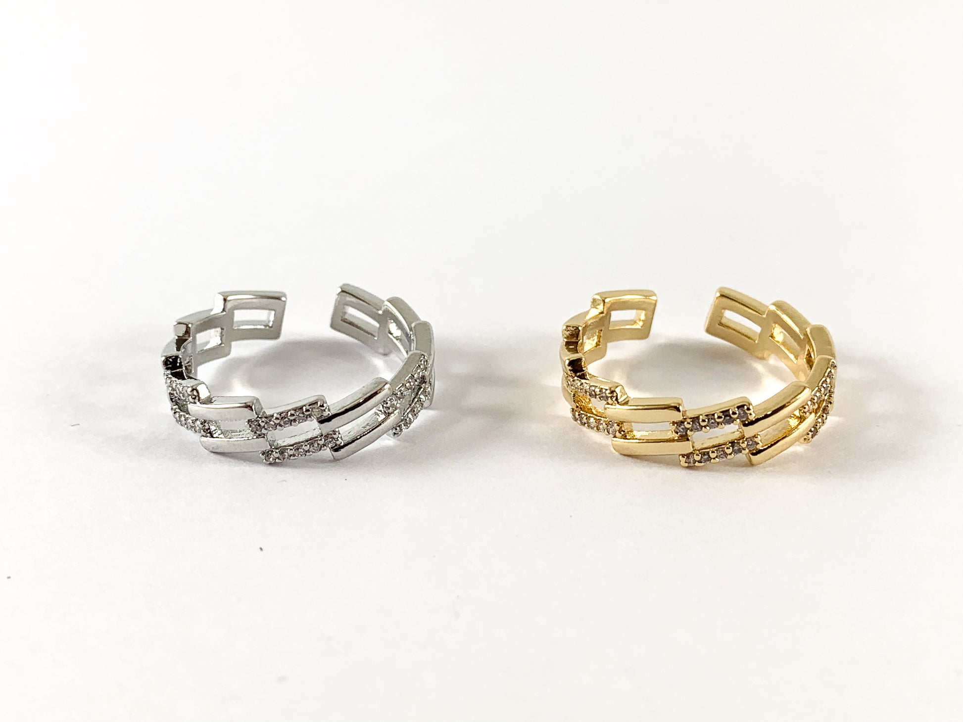 18K Real Gold/Platinum Plated CZ Pave Rectangle Chain Link Ring 4pcs