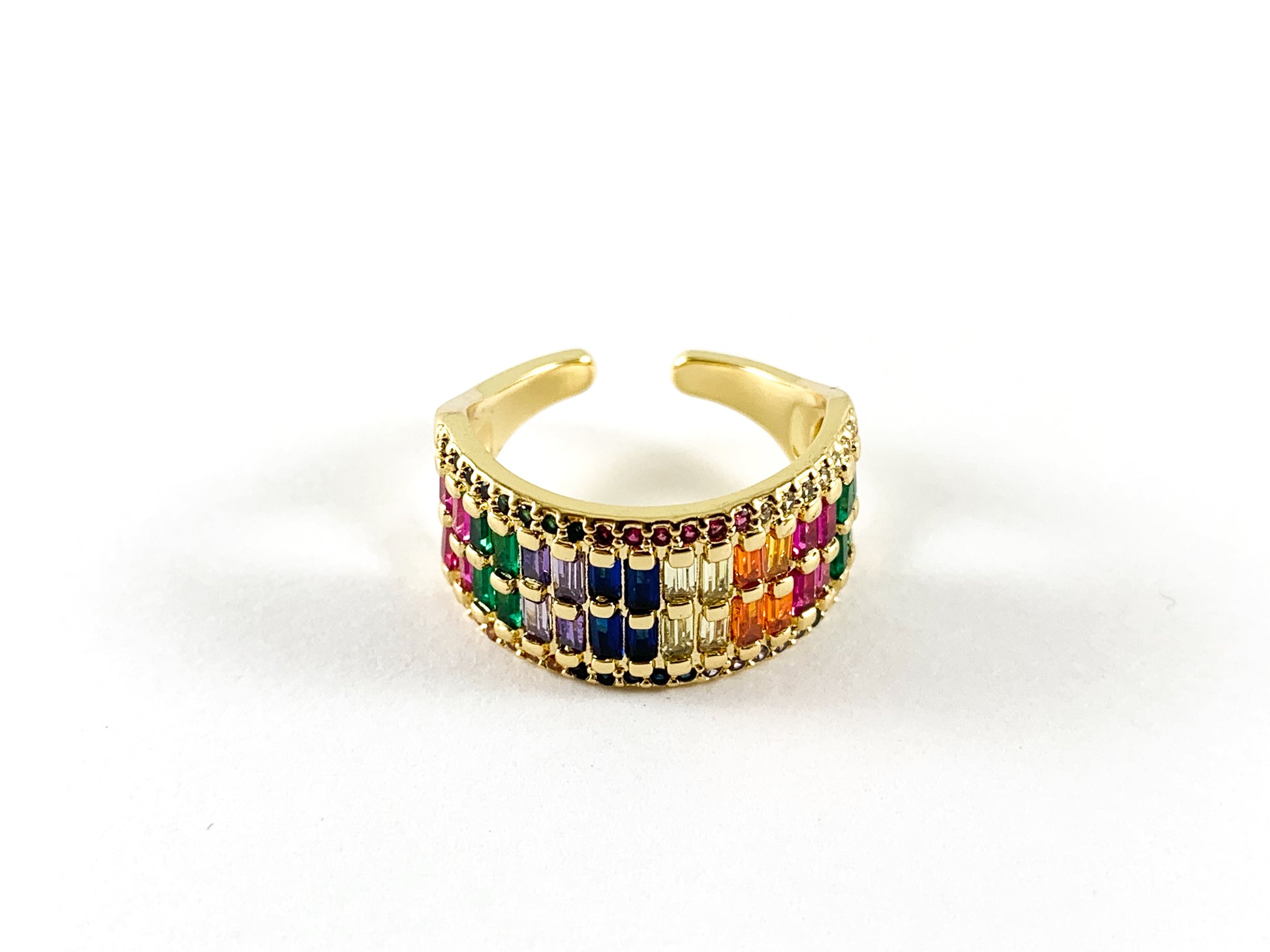 18K Real Gold/Platinum Plated Rainbow Multi CZ Full Pave Bar Statement Ring 3pcs