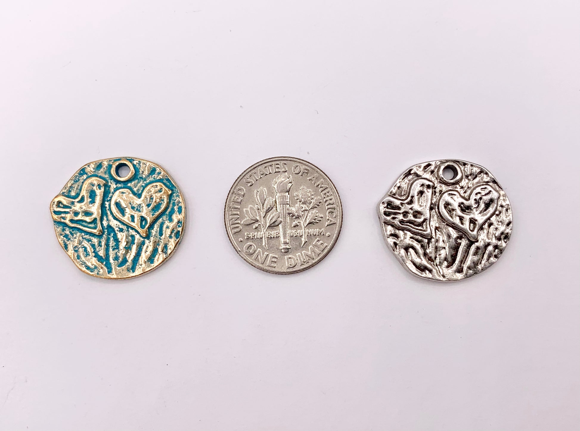 18x20mm Pewter Heart Coin Charms Valentine's Day Heart Pendants in 9 Colors