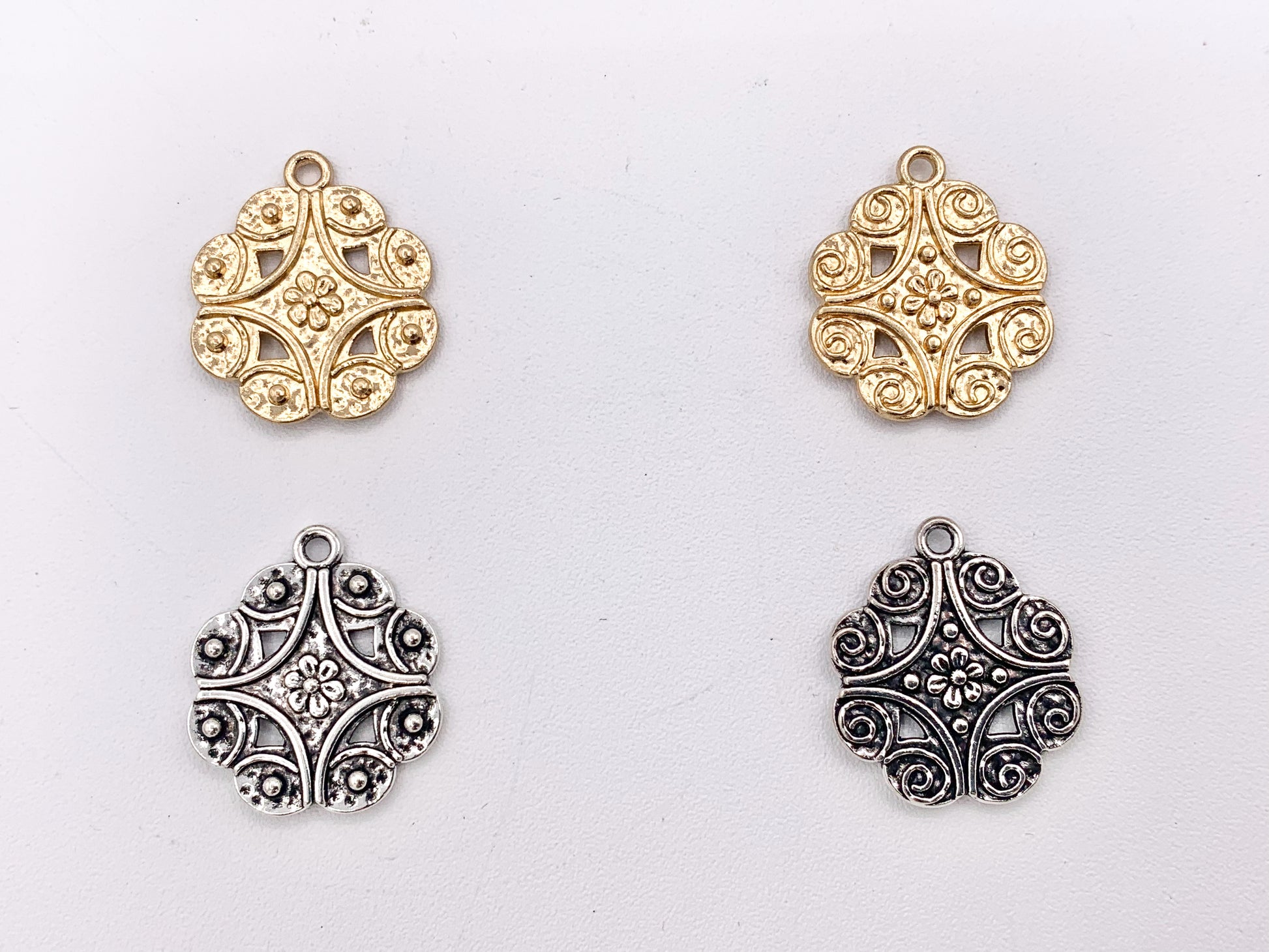 19mm Pewter Floral Charms Cute Flower Pendant in Gold, Silver, Bronze, Gunmetal and Patina Color