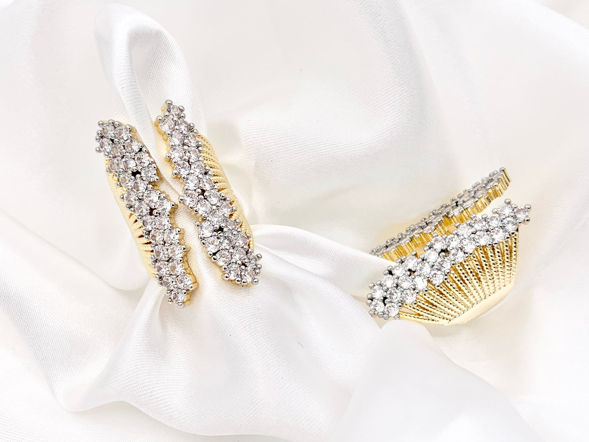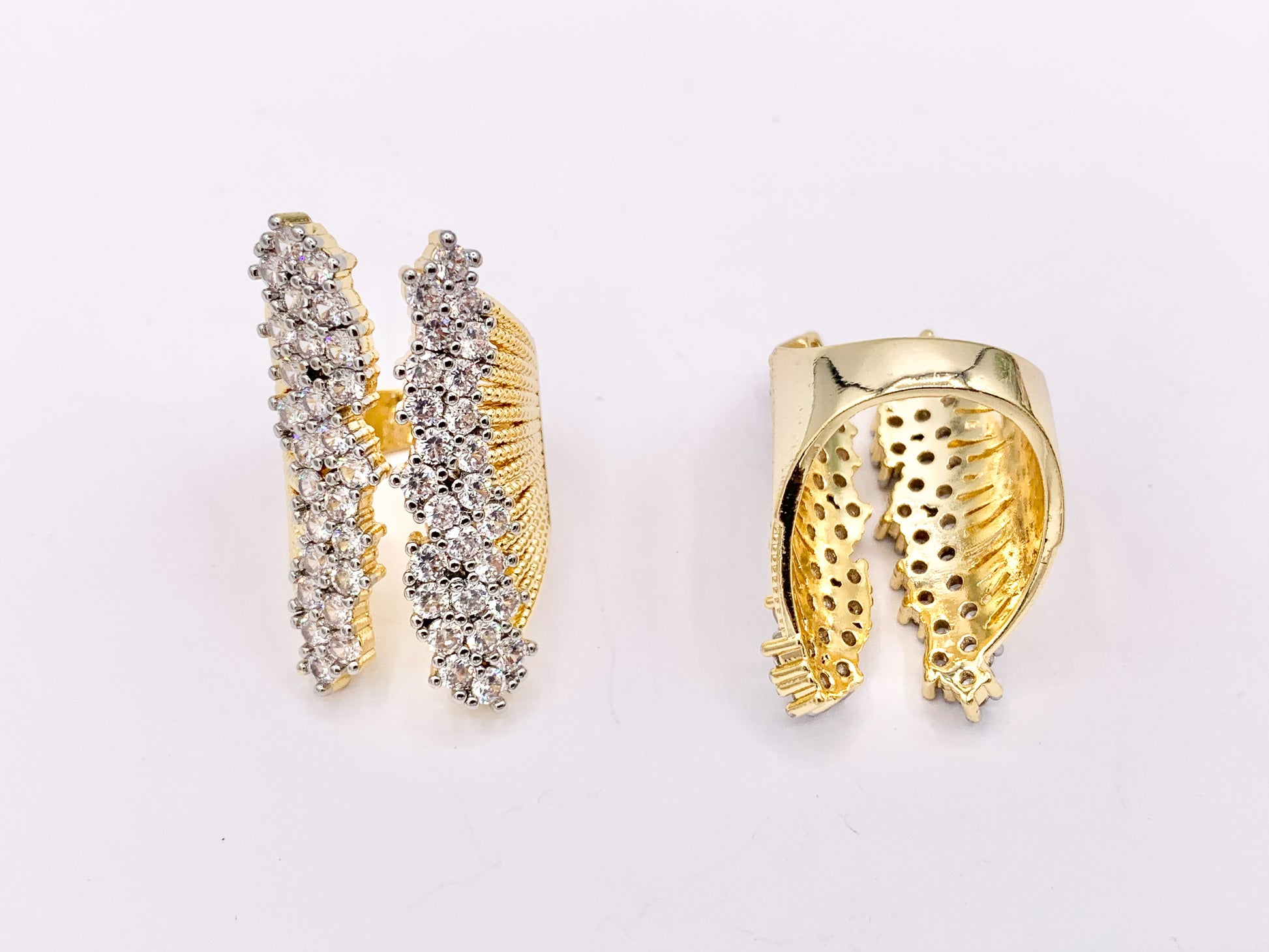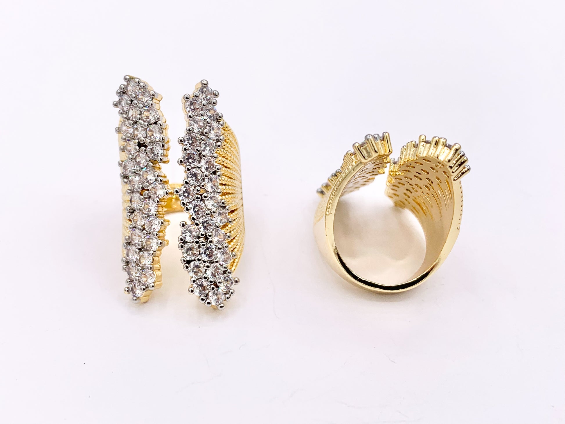 2 Tone Thick Chunky Front Open Adjustable Ring in Real Gold/Platinum 18K Plated Copper CZ Pave 3 PCS