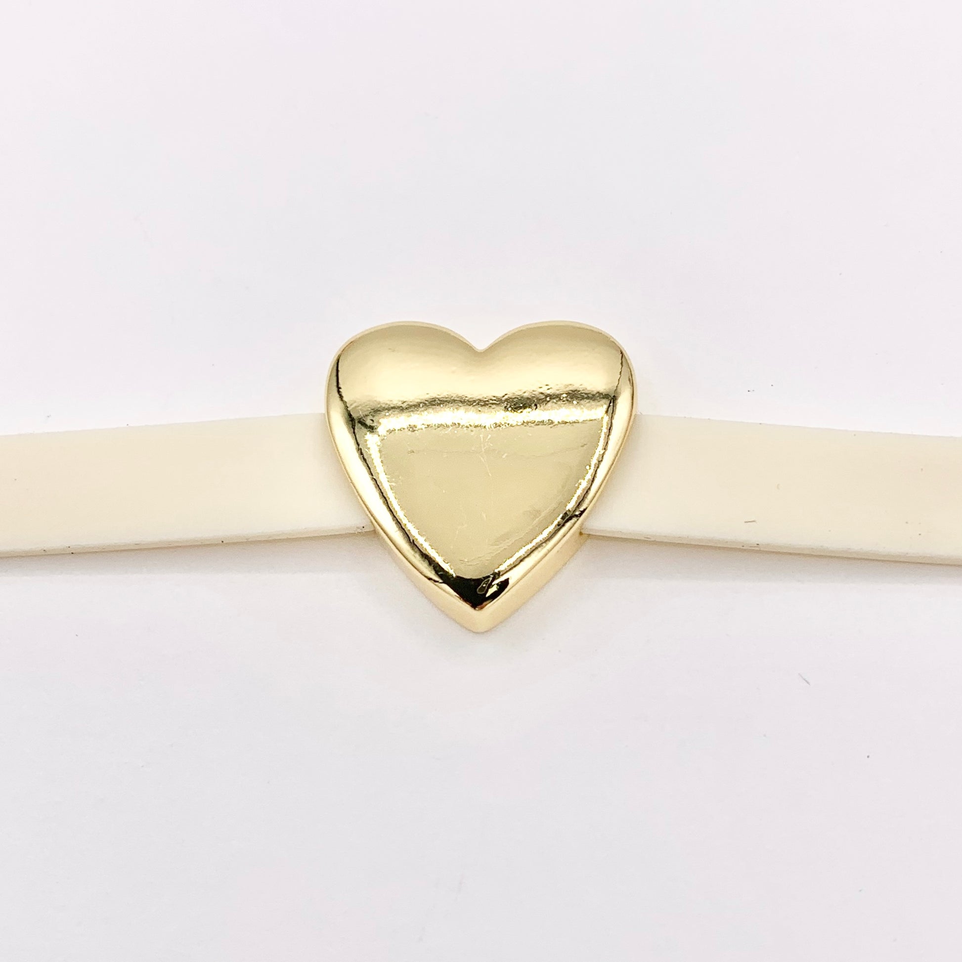 Cute Gold Heart Slider Charms in 18K Gold plated Copper. These heart sliders are real gold 18K plated with a copper base. These charms can be wonderful made into bracelets, necklaces, earring drops and even used for crafts.