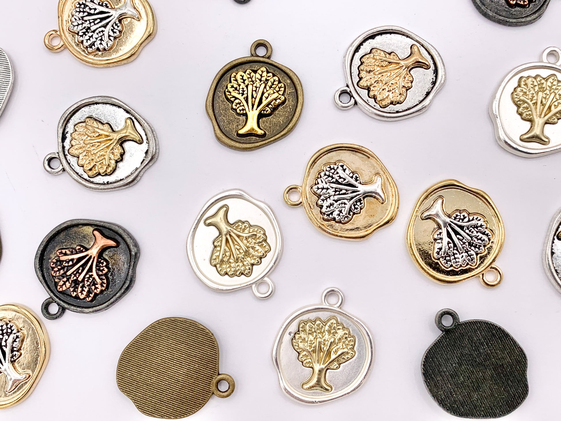 20x24mm Pewter Tree of Life Coin Charms One Sided 2 Tone Coin Pendant in Gold, Matte Silver, Silver, Brass, Gunmetal