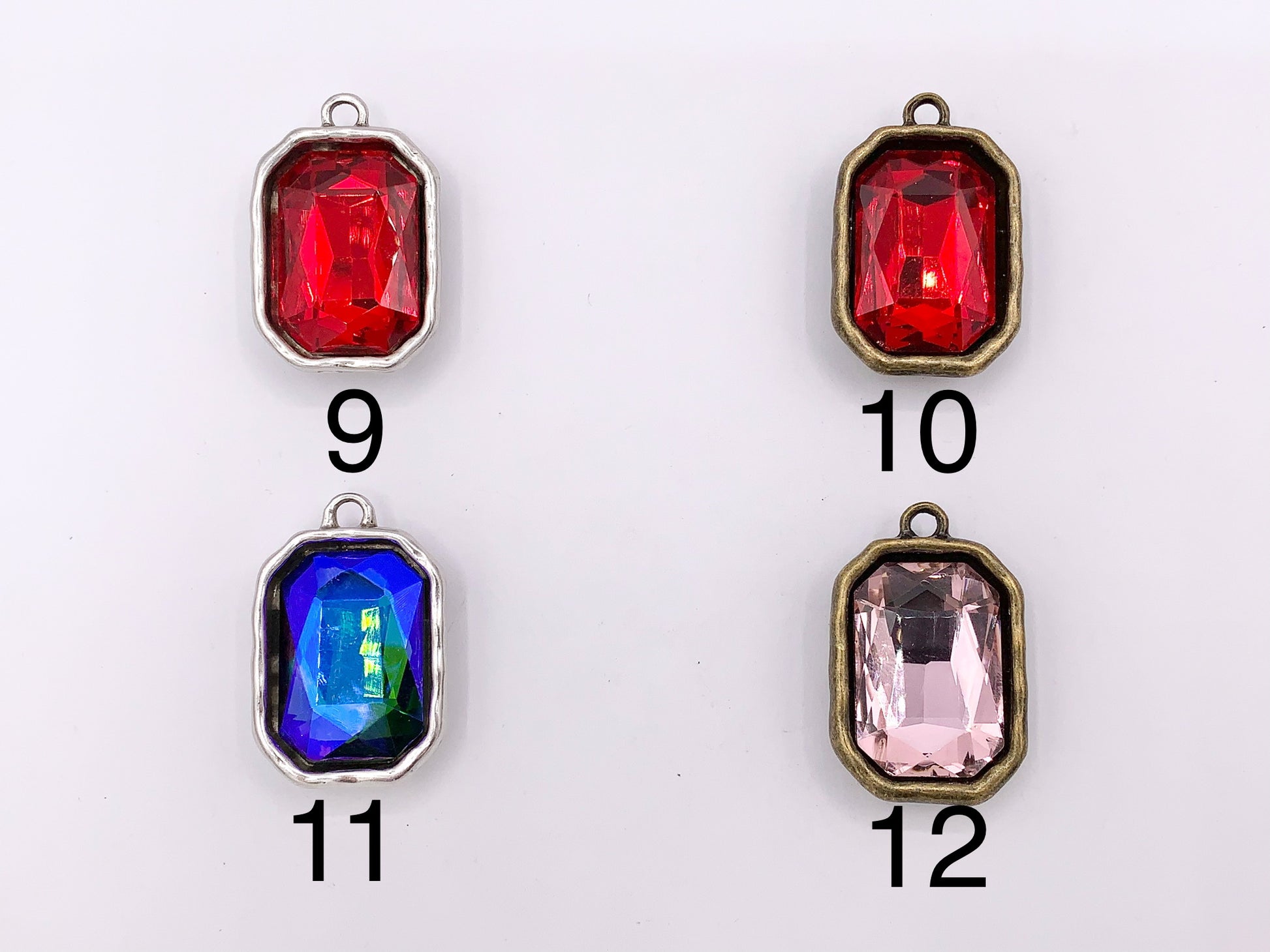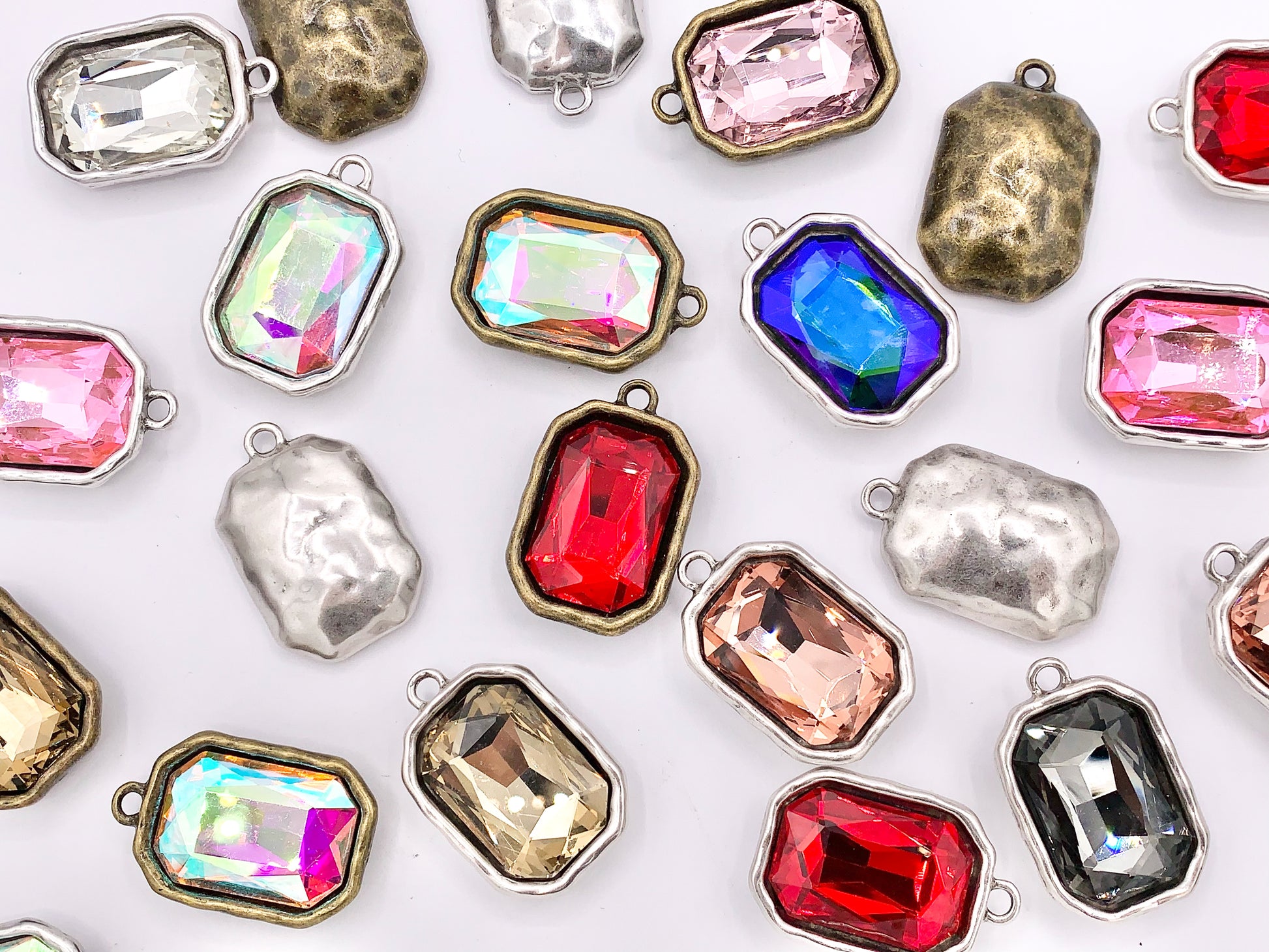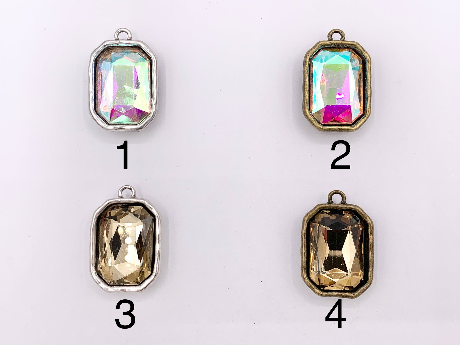 24x36mm Pewter Large Soldered Crystal Rectangle Silver And Bronze Pendant Available in 12 Colors 5 PCS