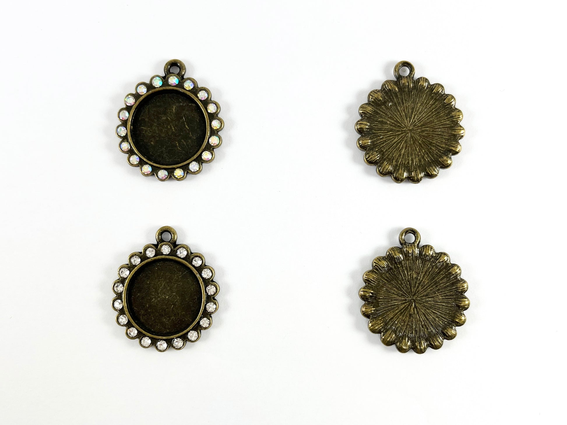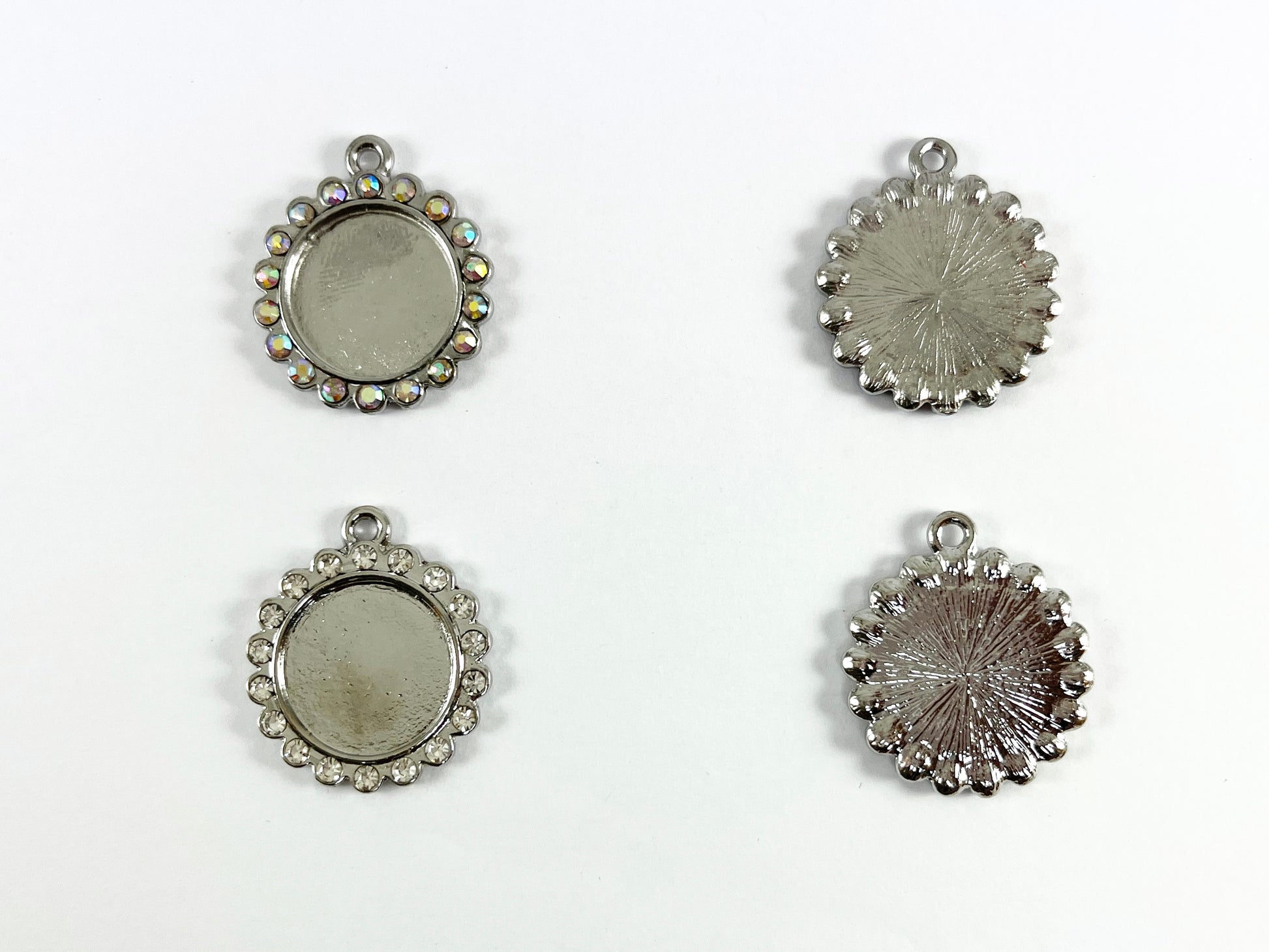 25mm Pewter Base Metal Rhinestone Coin Flower Bezel Tray Pendant Available in Gold , Silver and Brass, Clear and Clear AB
