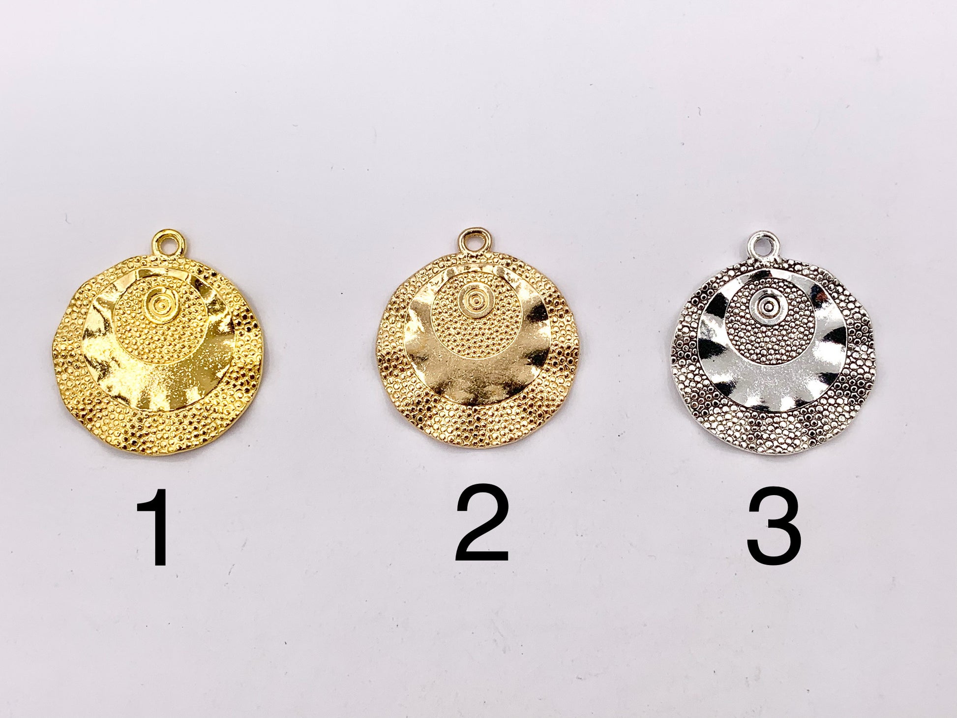 26mm Pewter Wavy Hammered Coin Charms Cute Swirl Coin Pendants in Light Gold, Gold, Silver, Bronze, Gunmetal and Blue Patina Color