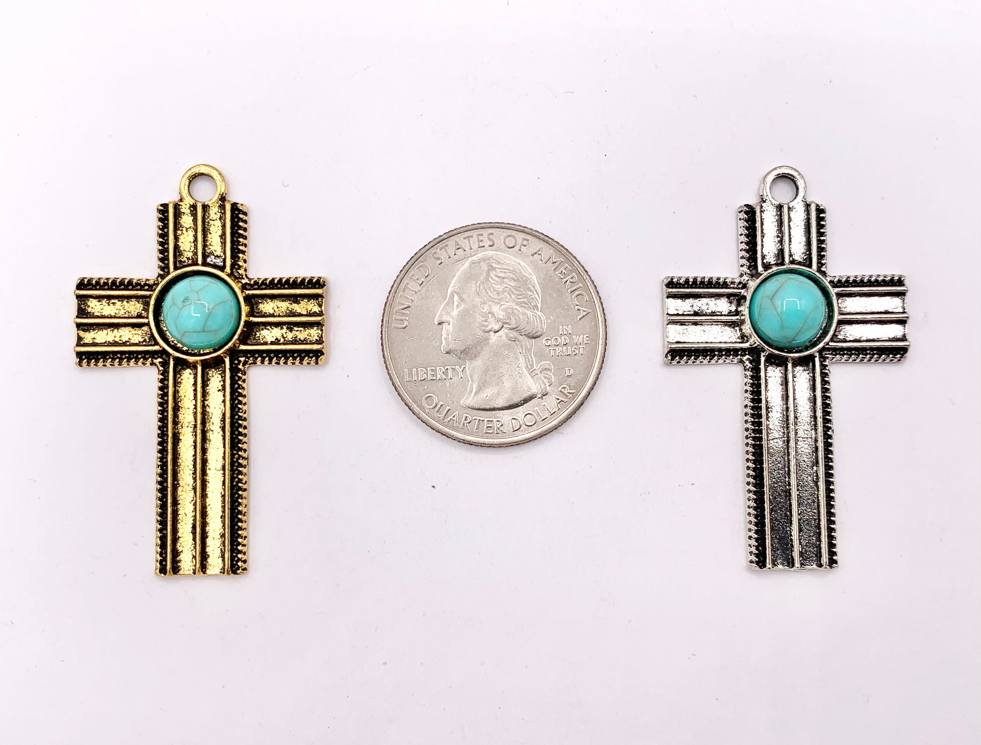 26x43mm Pewter Cross With Turquoise Charms Large Antique Cross Pendants in Gold, Silver and Bronze Color 10 PCS
