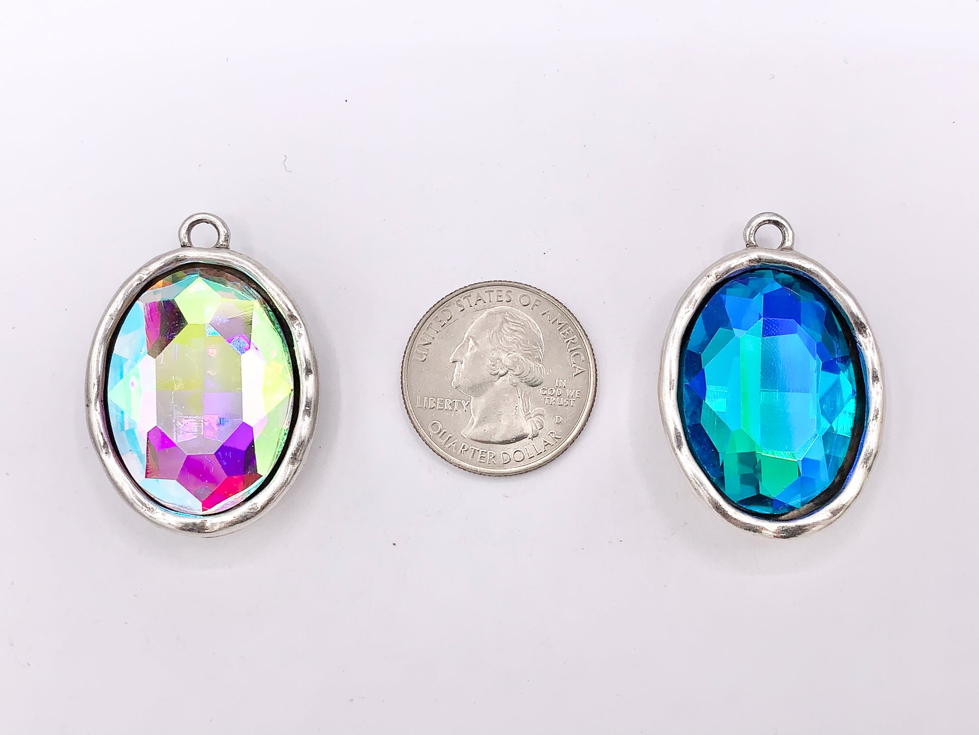 27x39mm Pewter Large Soldered Crystal Oval Silver Pendant Available in 4 Colors Clear, Champagne, AB, Blue 5 PCS