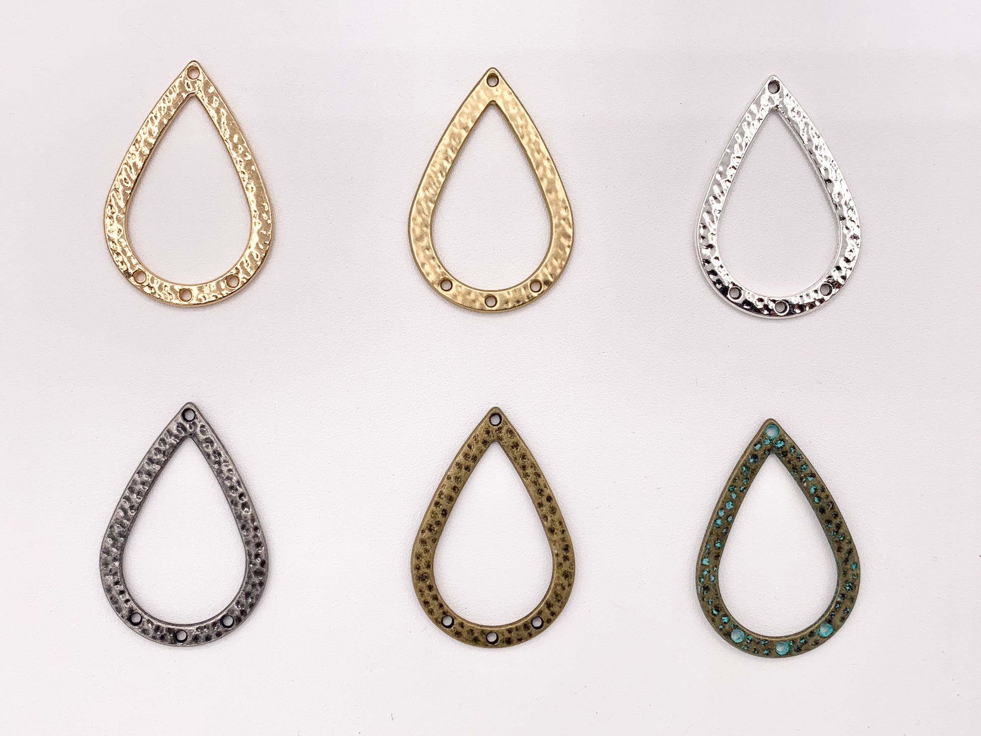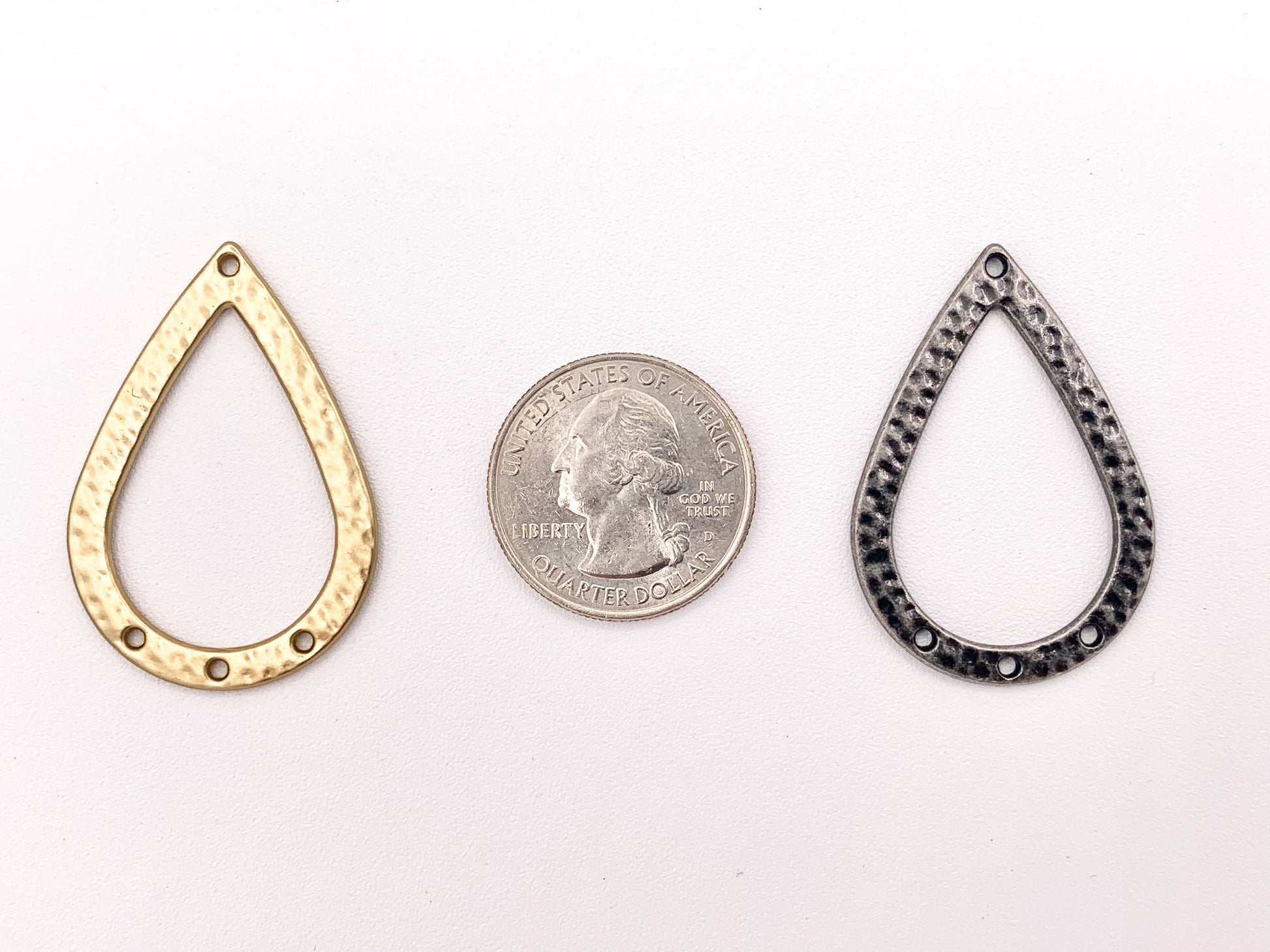 27x39mm Pewter Teardrop Pendants Hammered Chandelier 3 Holes Connectors Bulk Order in Matte Gold, Gold, Silver, Brass, Gunmetal and Patina