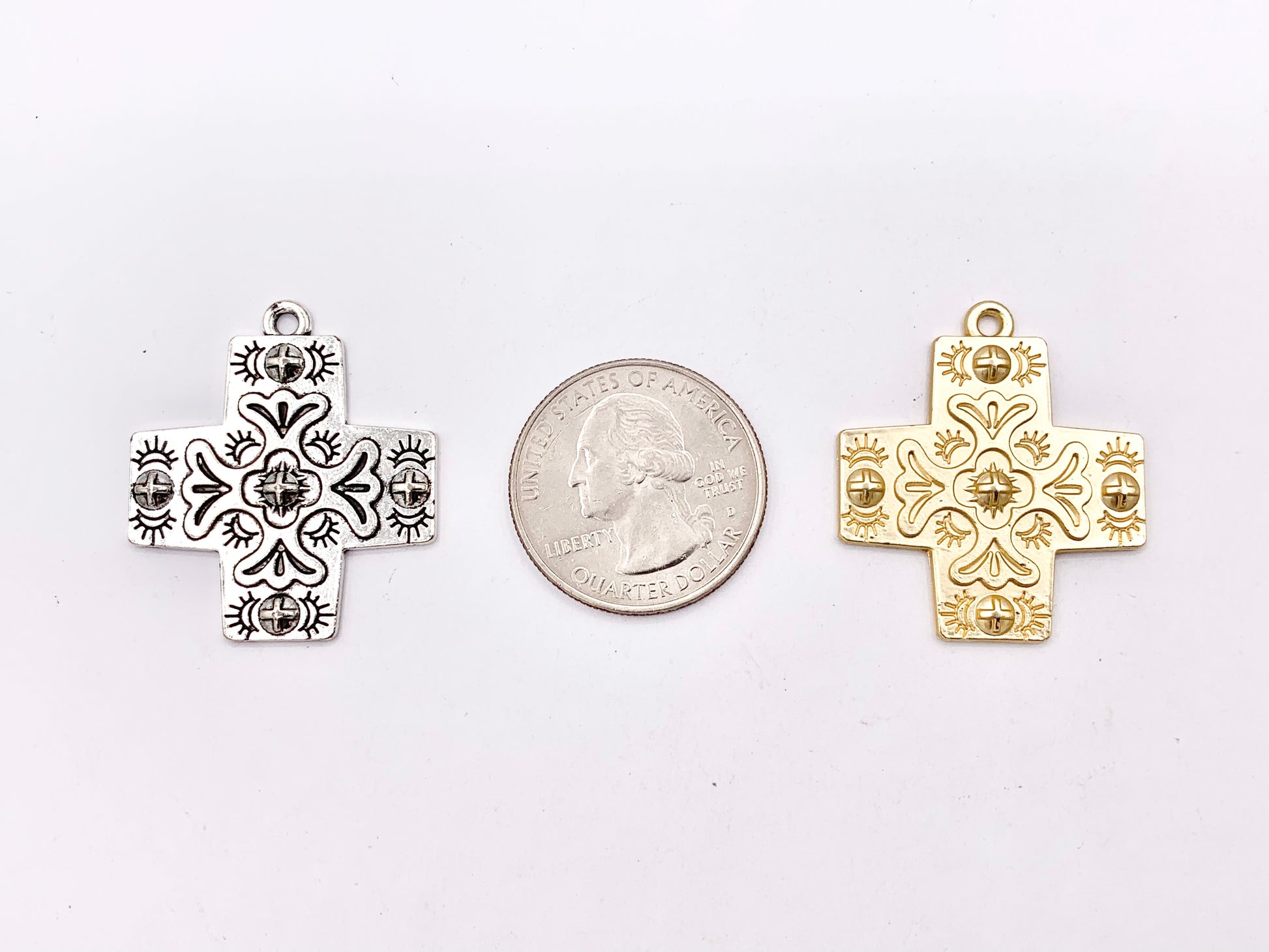 28mm Pewter Greek Cross Charms Large Cross Pendants in Matte Gold, Silver, Bronze, Gunmetal Color