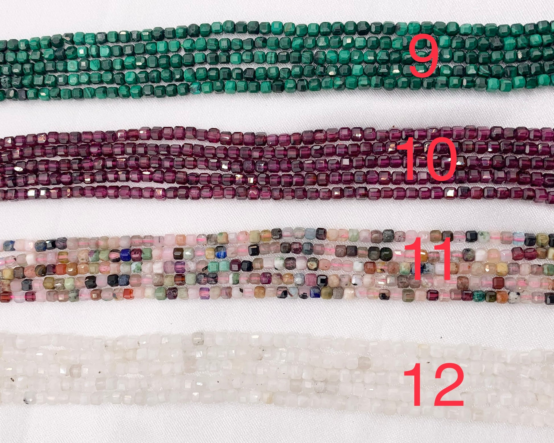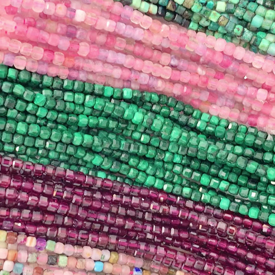 2mm Assorted High Quality Stone Hand Cut Faceted Cube Beads 13 Different Natural Stone Beads 15" Strand