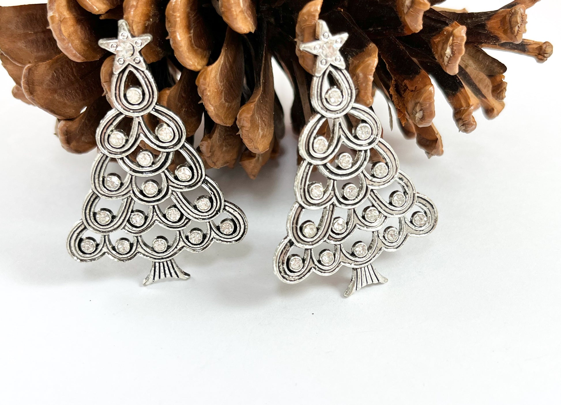 36x52mm Pewter Christmas Tree Charm with Crystal Rhinestones in Antique Silver Color Christmas Decoration 8PCS
