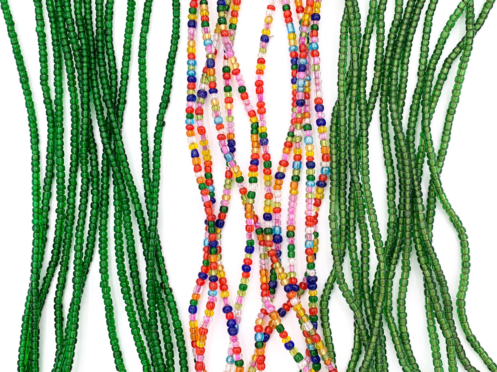 4mm African Sandcast Transparent Seed Beads Handmade Glass Beads From Ghana in Light Green, Green And Multicolor