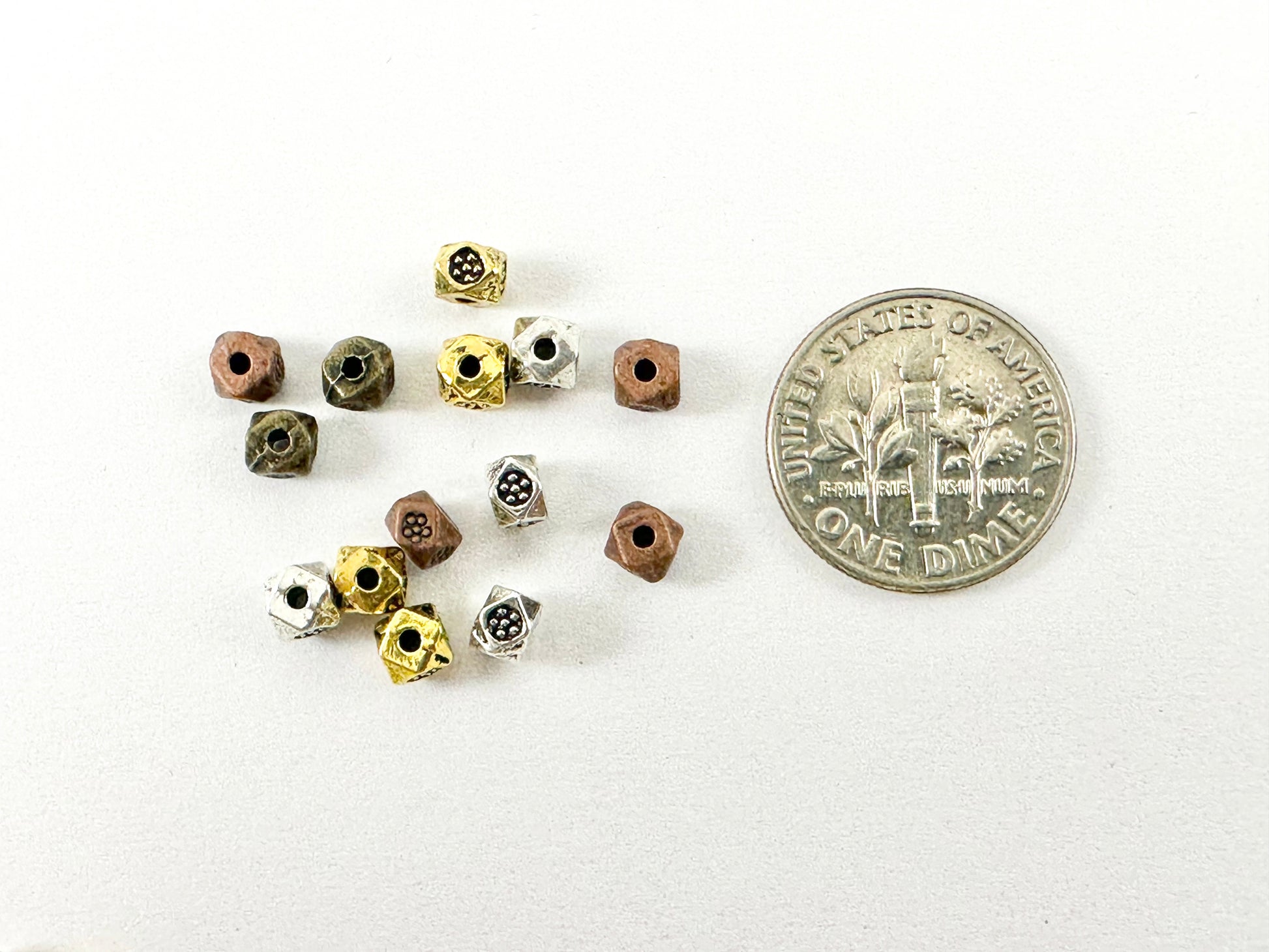 4x3mm Pewter Cube Faceted Spacer Beads Tiny Nugget Space Beads for Jewelry Making Antique Gold, Silver, Bronze, Copper
