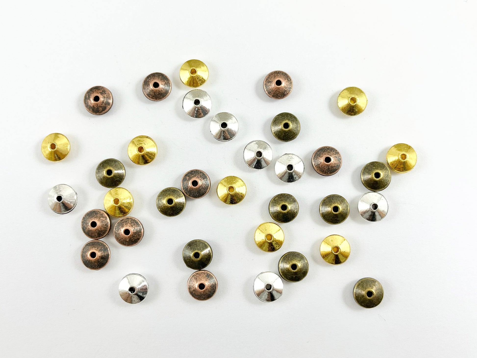 4x8mm Pewter Shiny Smooth Saucer Spacer Beads Gold, Silver, Antique Bronze, Antique Copper 125 Grams Bag