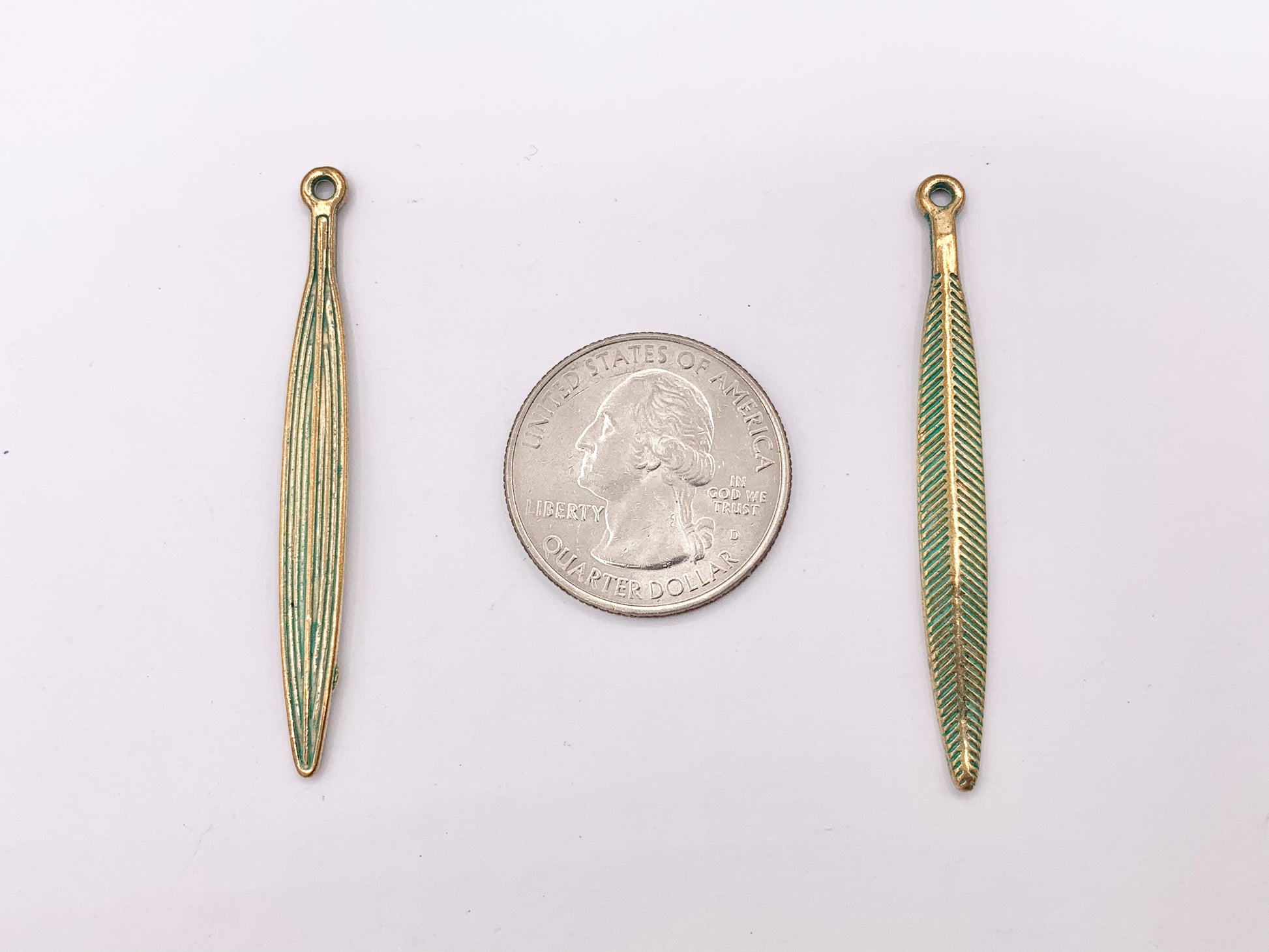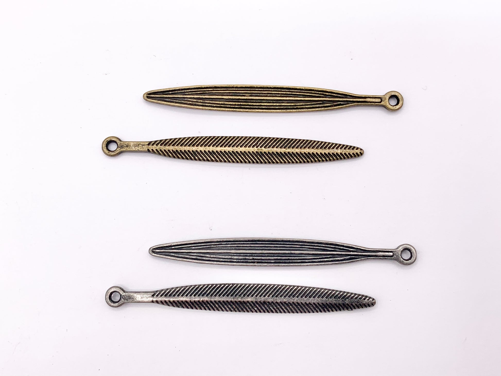 5x51mm Pewter Carved Skinny Leaf Pendants Bulk Order in Gold, Matte Gold, Silver, Brass, Gunmetal, Blue And Green Patina