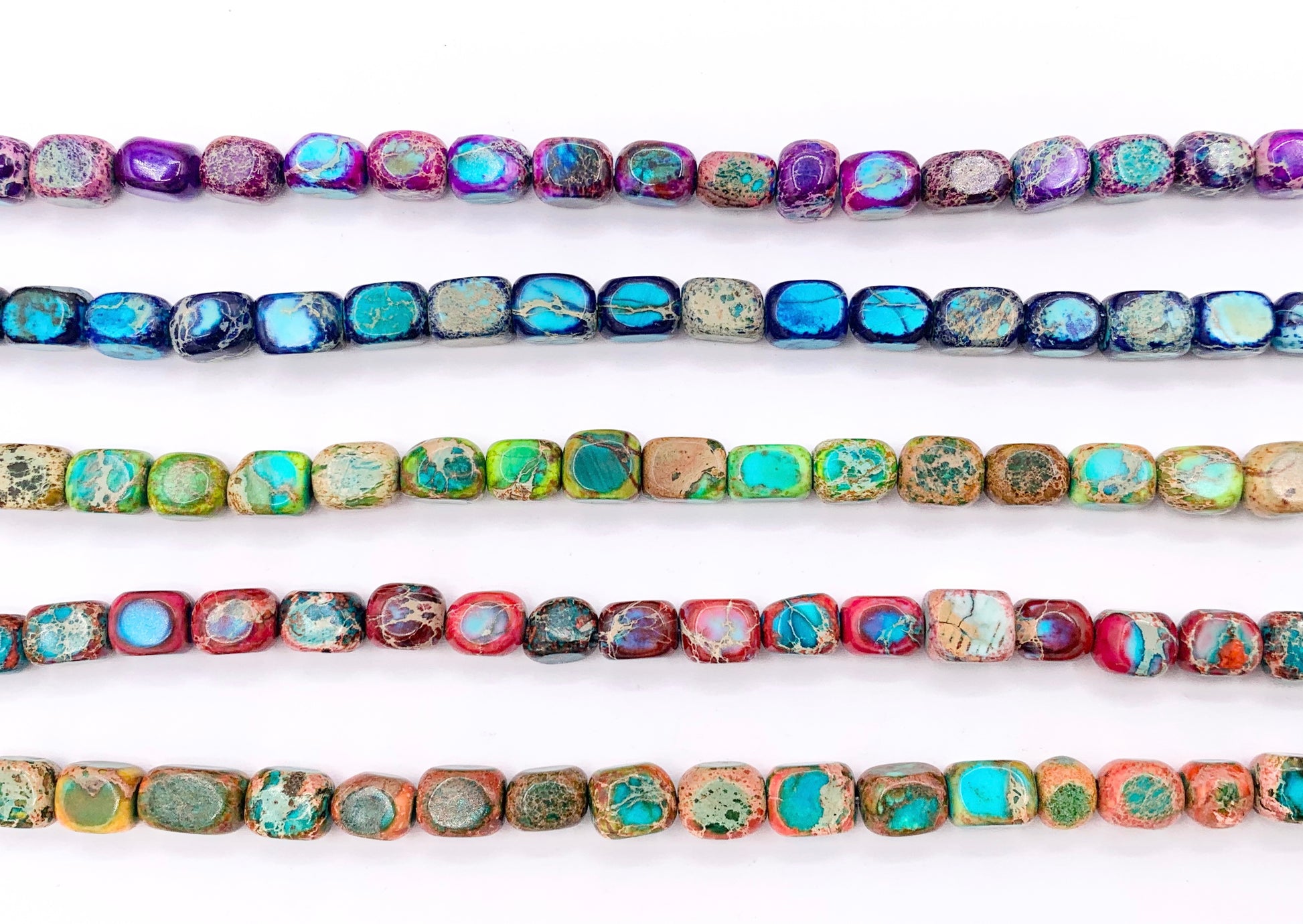 5x7mm Dyed Composite Variscite/Sea Sediment/Impression Jasper Beads Irregular Rectangular Cube Beads Price Per Strand