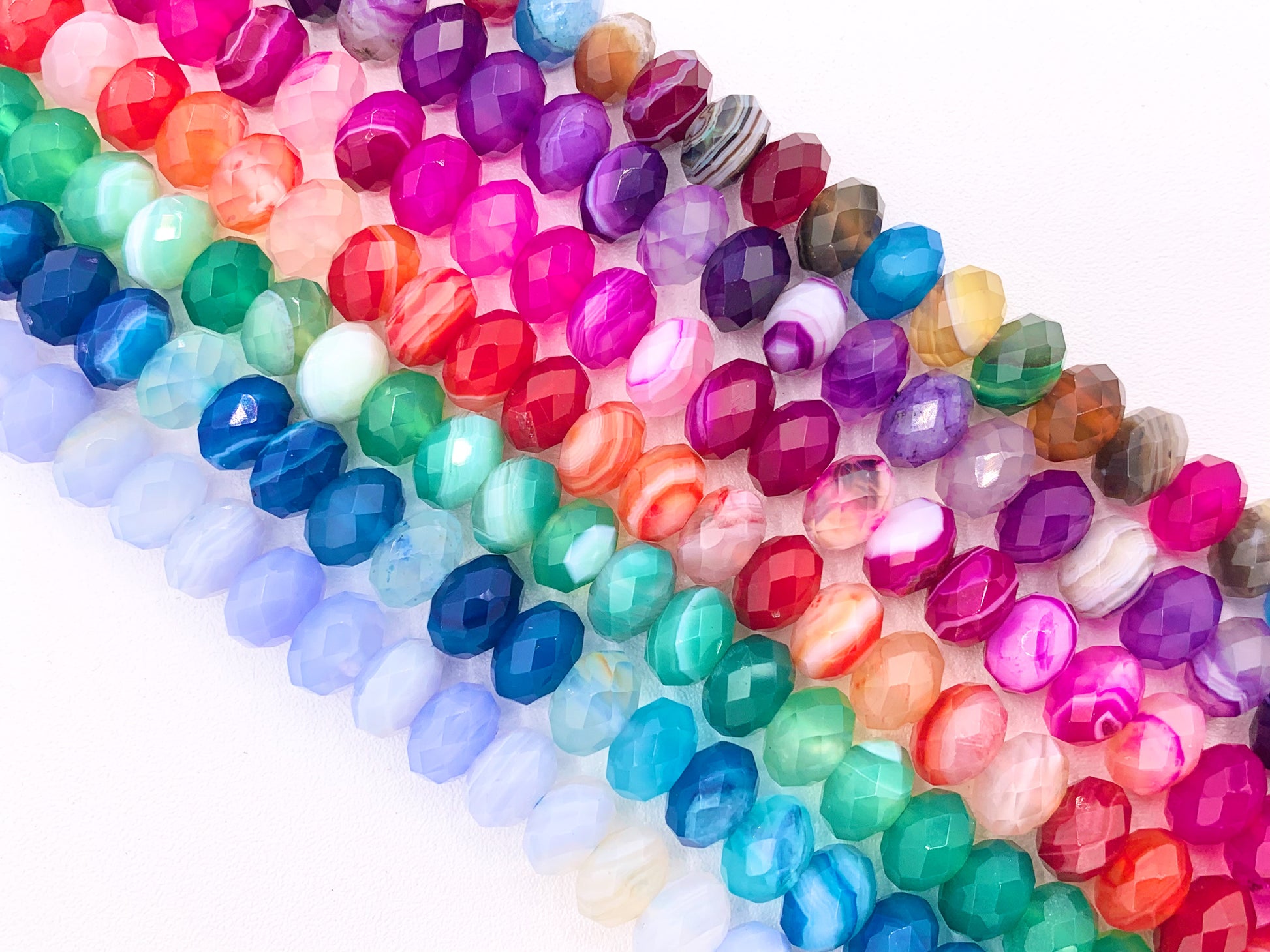 Dyed Colorful Sardonyx Rondelle Hand Cut Genuine Gemstone Beads in 7 Colors 6mm 8mm 10mm Around 15"