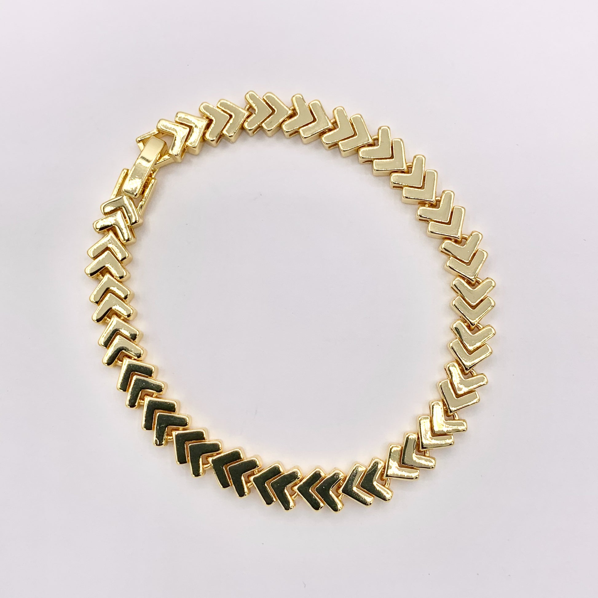 These delicate chevron link chain bracelets are made with real 18k Gold plated Copper.