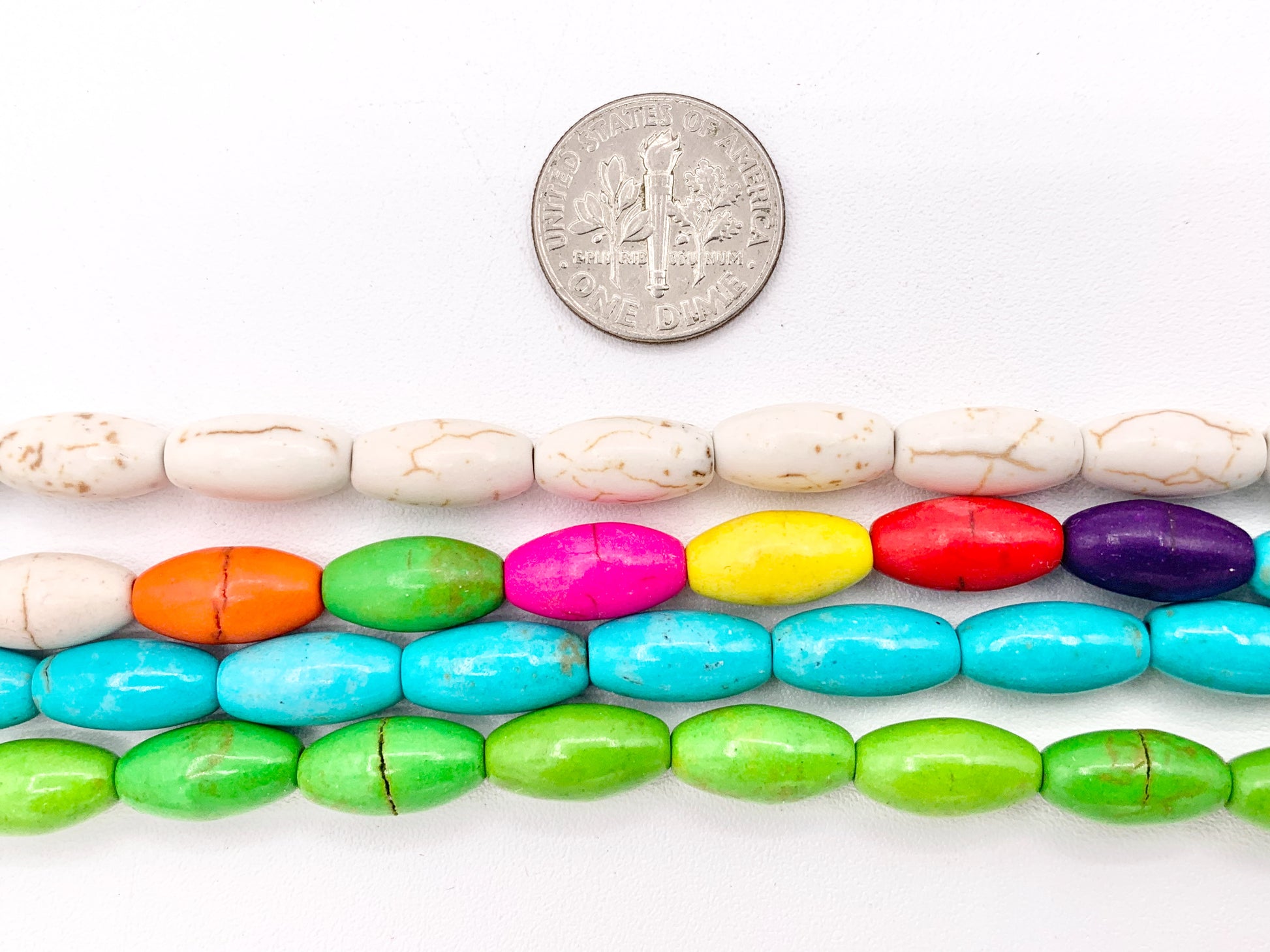 6.5x12mm Howlite Rice Shape Beads White, Red, Turquoise, Multicolor, Green, Red, Dark Blue, Purple And More Around 15" Price 1 Strand