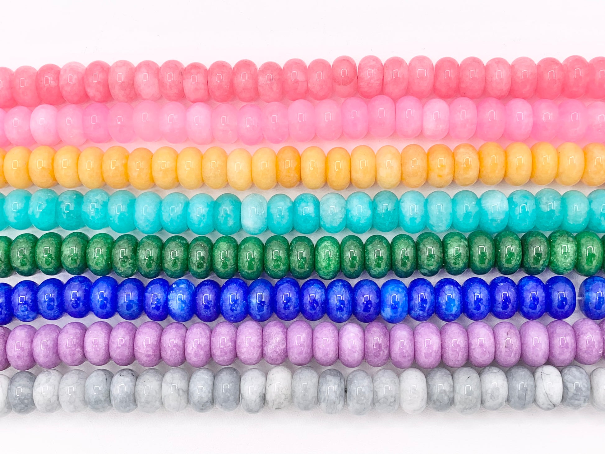 6x10mm Beautiful Dyed Jade Smooth Rondelle Beads | Multicolor Dyed Jade Imitation Stone Beads Around 15" | Price Per Strand