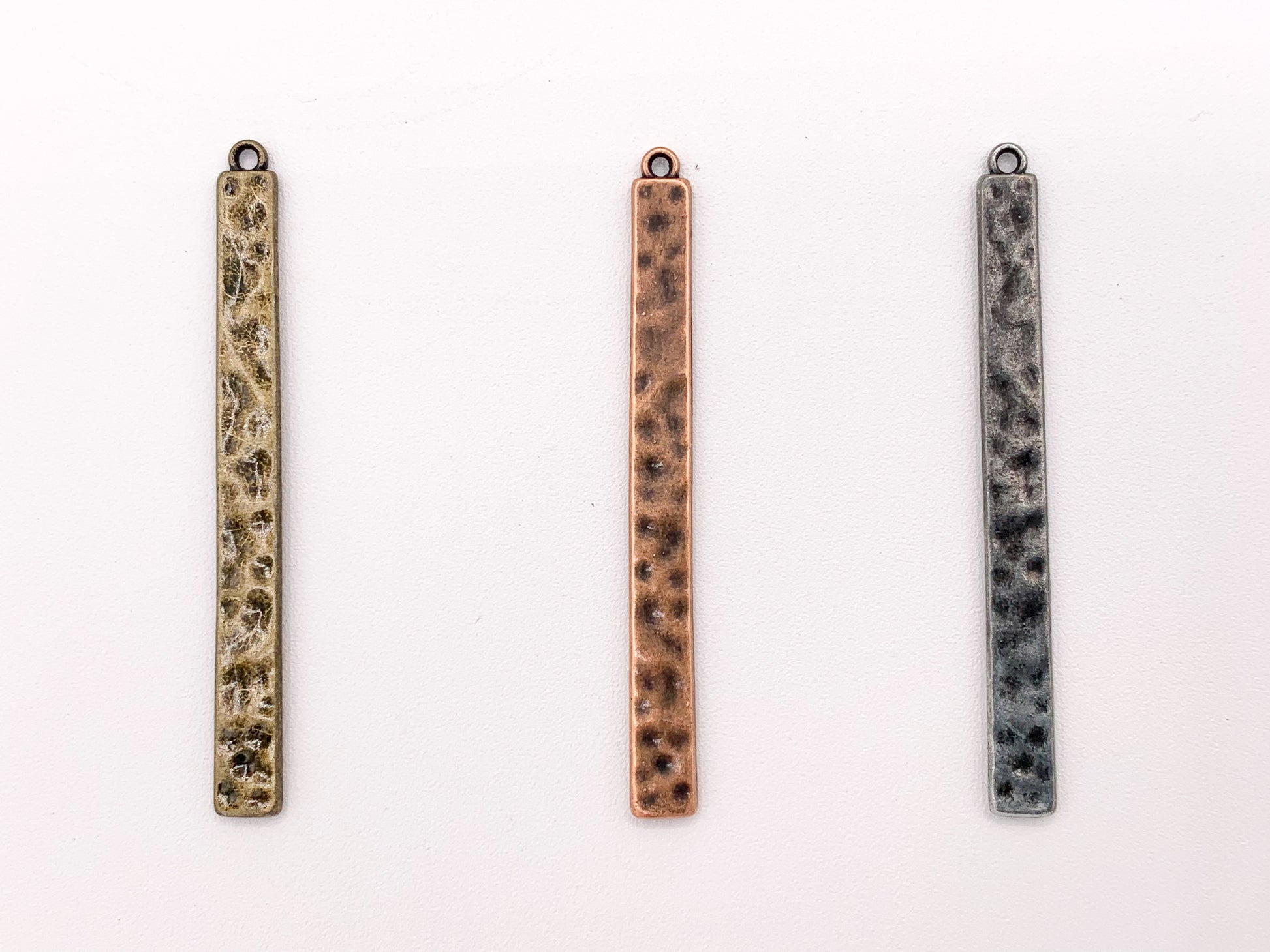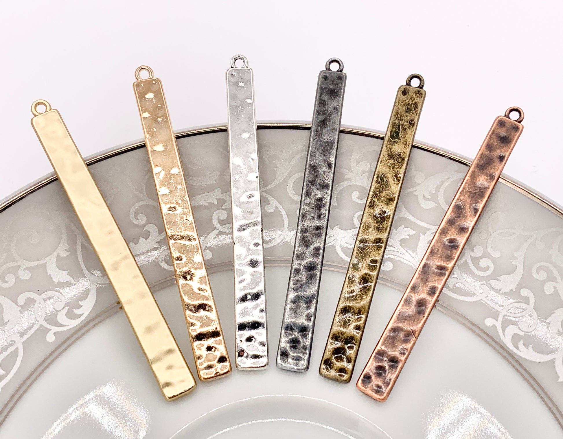 6x63mm/2.48 inches Pewter Hammered Bar Pendants Bulk Order in Light Gold, Gold, Matte Gold, Silver, Brass, Gunmetal and Copper