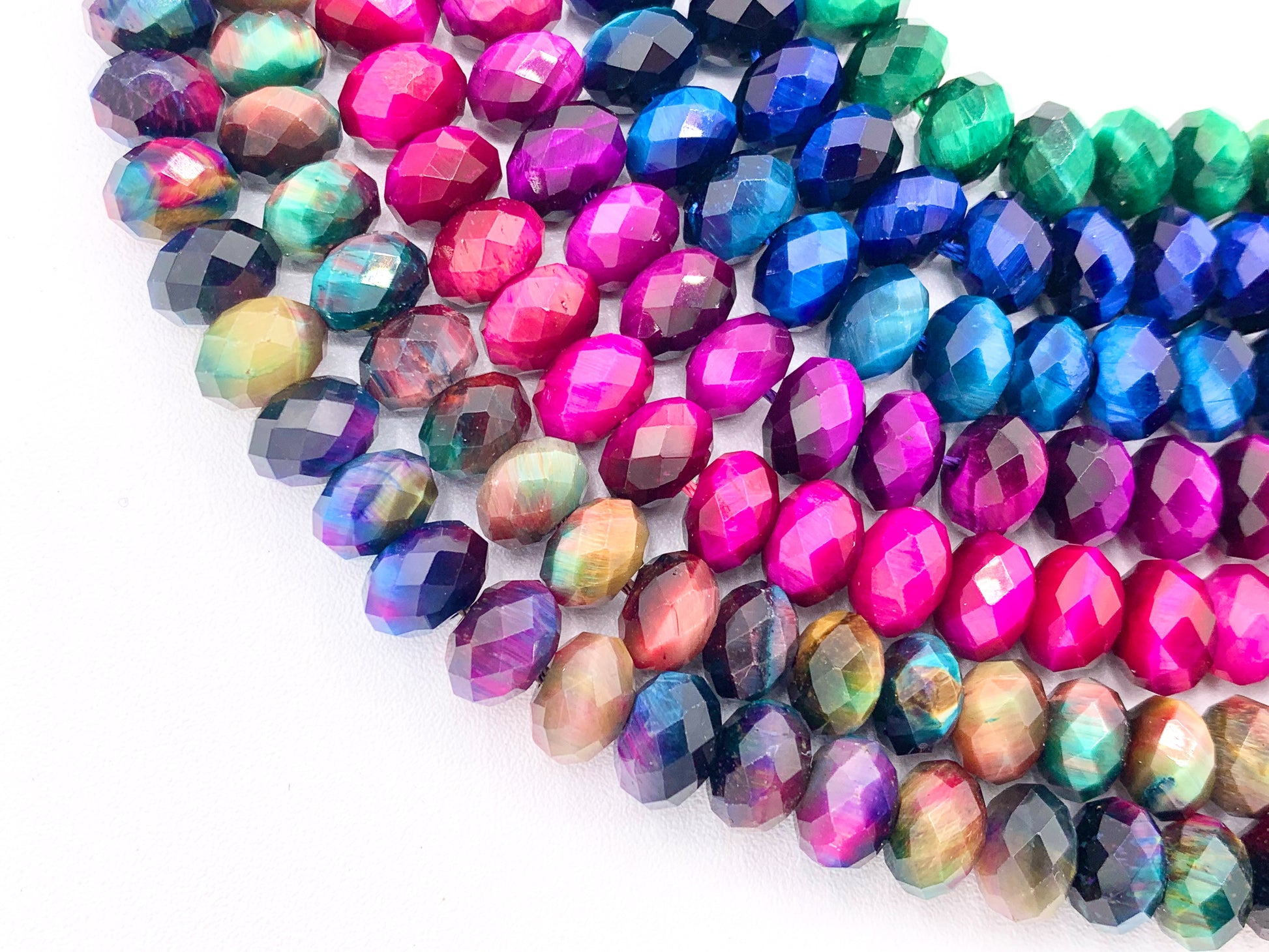 6x8mm Dyed Colorful Tiger's Eye Rondelle Hand Cut Genuine Gemstone Beads in 7 Colors Around 15"