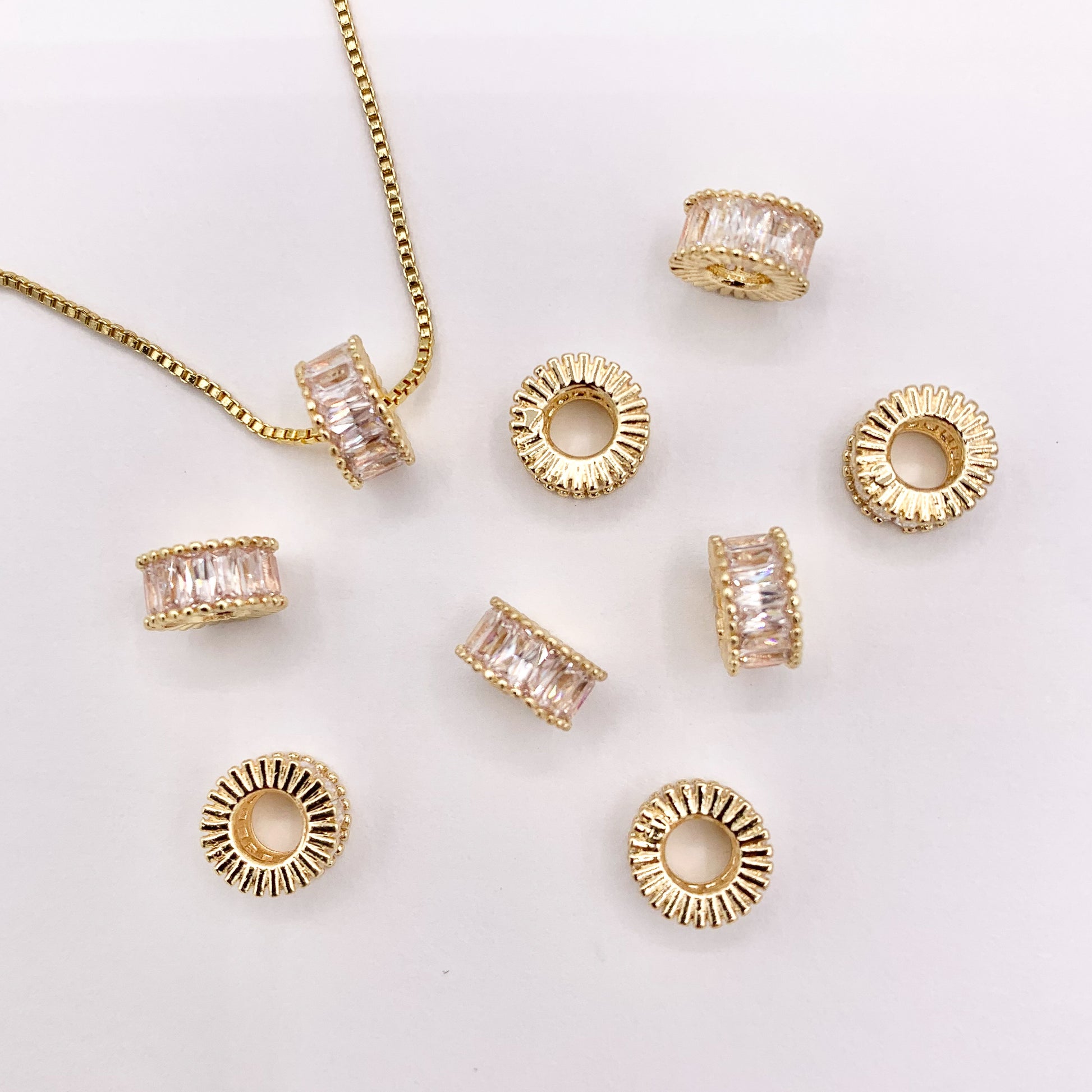These cute little tube spacer beads are real gold 18K plated with a brass base. These beads can be wonderful made into bracelets, dainty necklaces and even used for crafts.