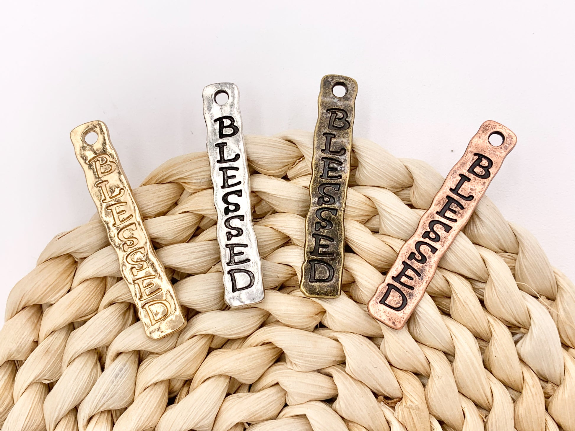 7x39mm/1.5 inches Pewter Hammered BLESSED Religious Bar Pendants Bulk Order in Gold, Silver, Copper And Brass