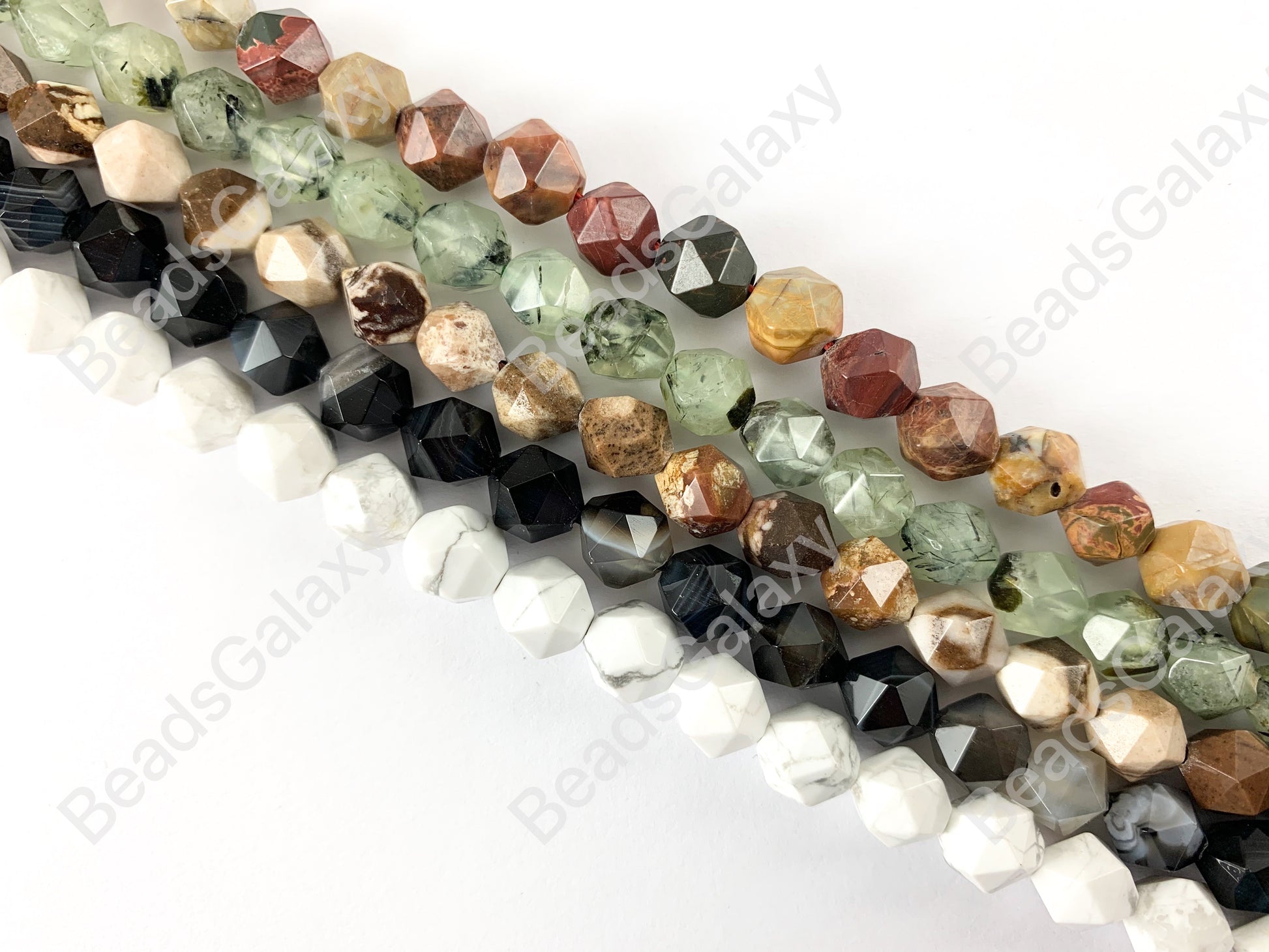 8mm Hand cut Gemstones Star cut Faceted Natural Gemstone Beads Around 15"