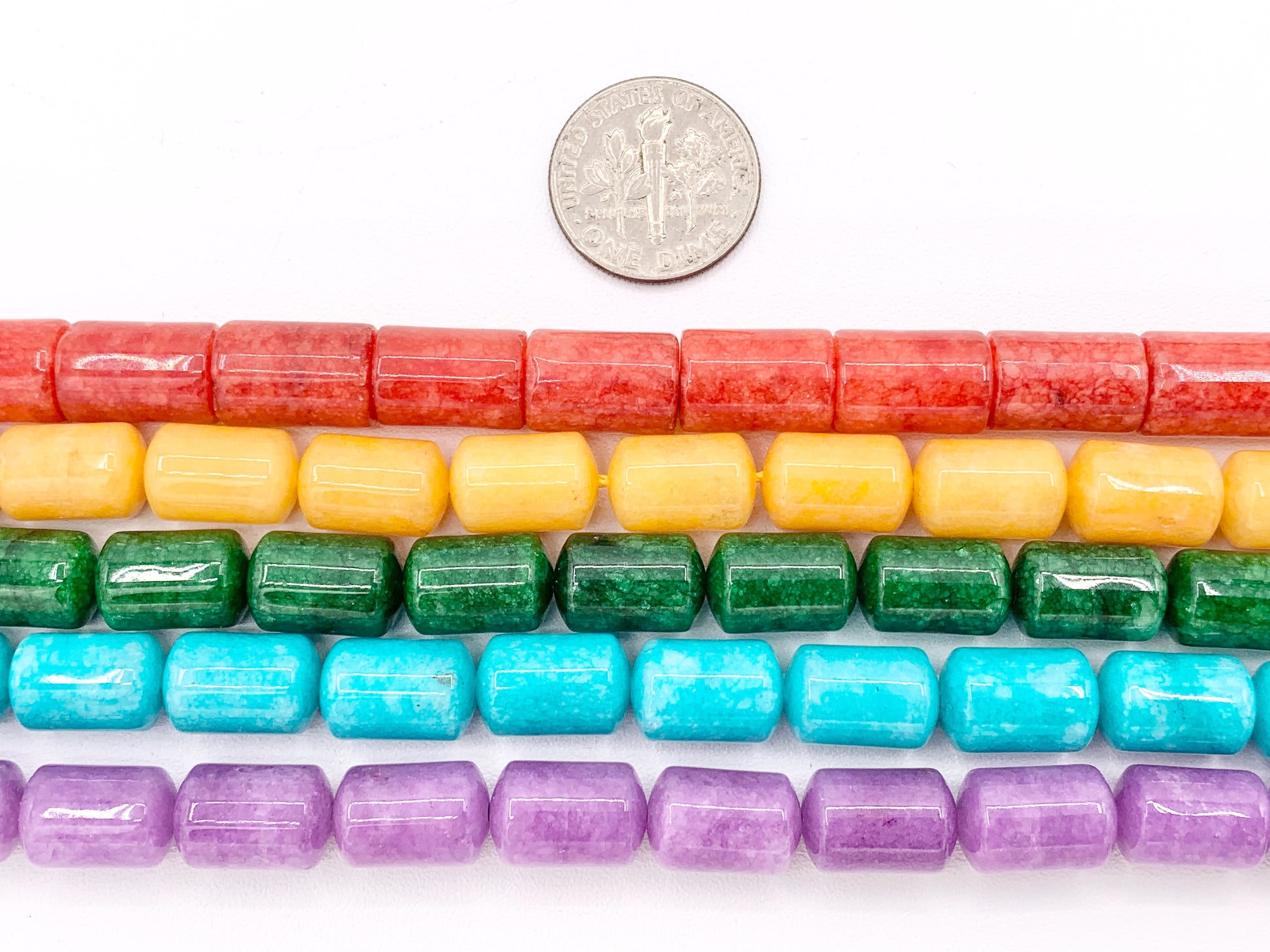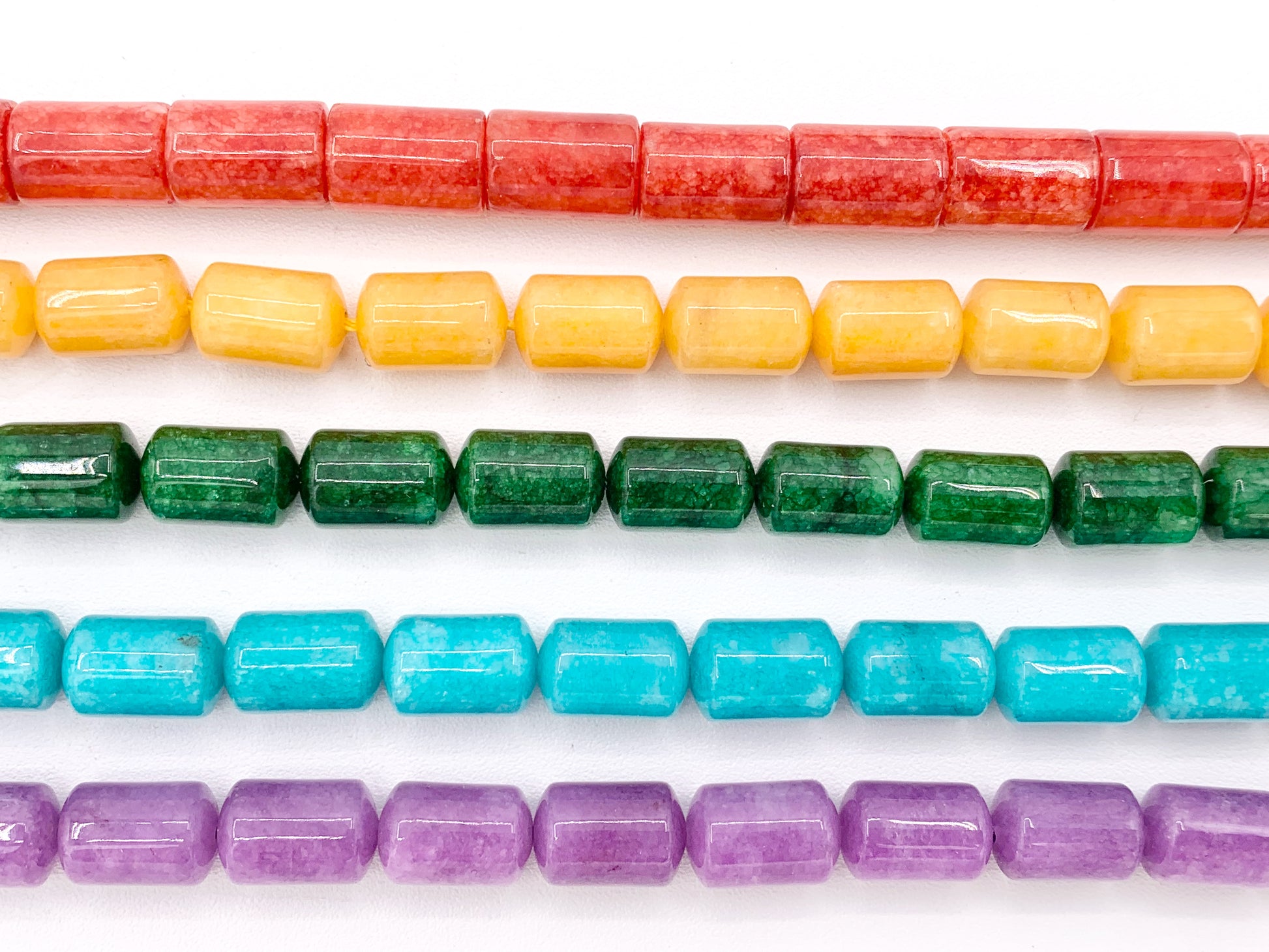 8x12mm Beautiful Dyed Jade Smooth Tube Beads | Multicolor Dyed Jade Imitation Stone Beads Around 15" | Price Per Strand