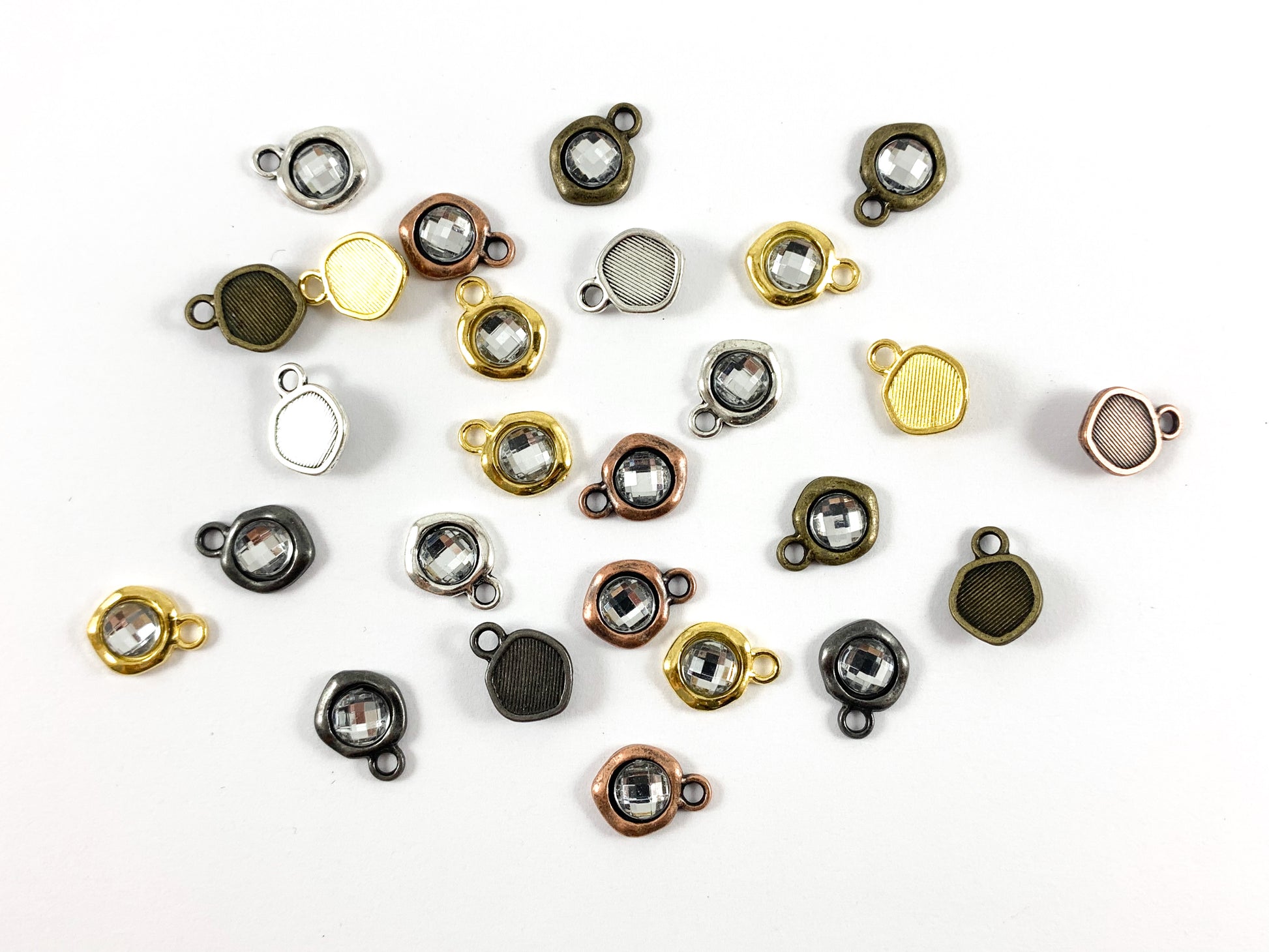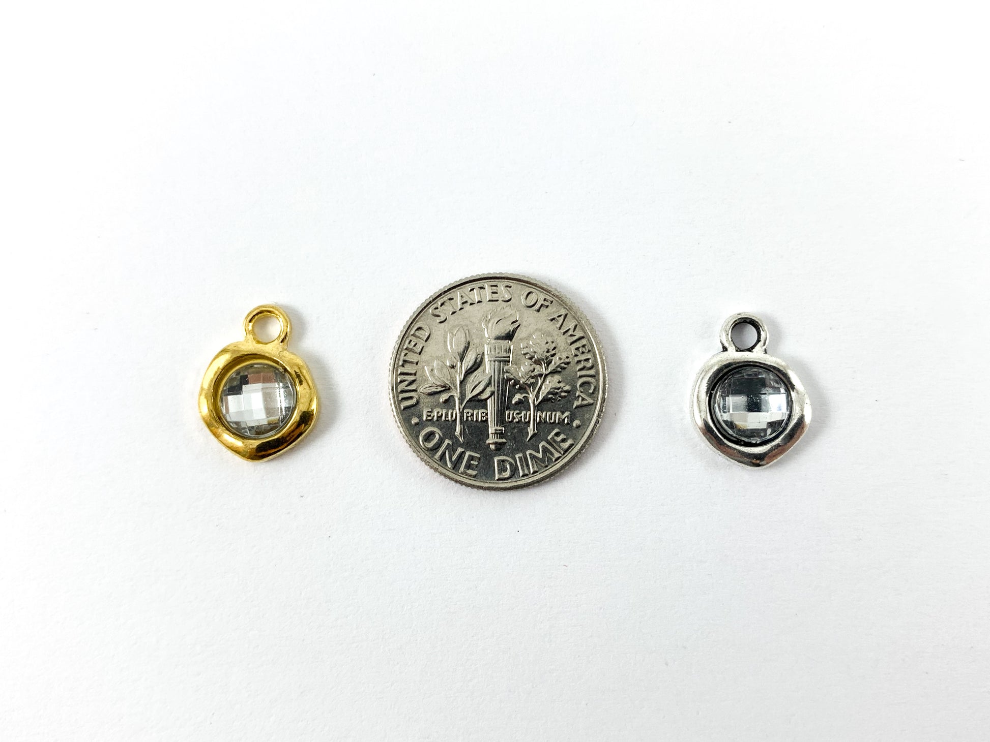 9.5mm Pewter Base Metal Tiny Clear Crystal Charm Mini Diamond Charm Available in Bronze, Copper, Gold, Silver and Gunmetal 50PCS Bag