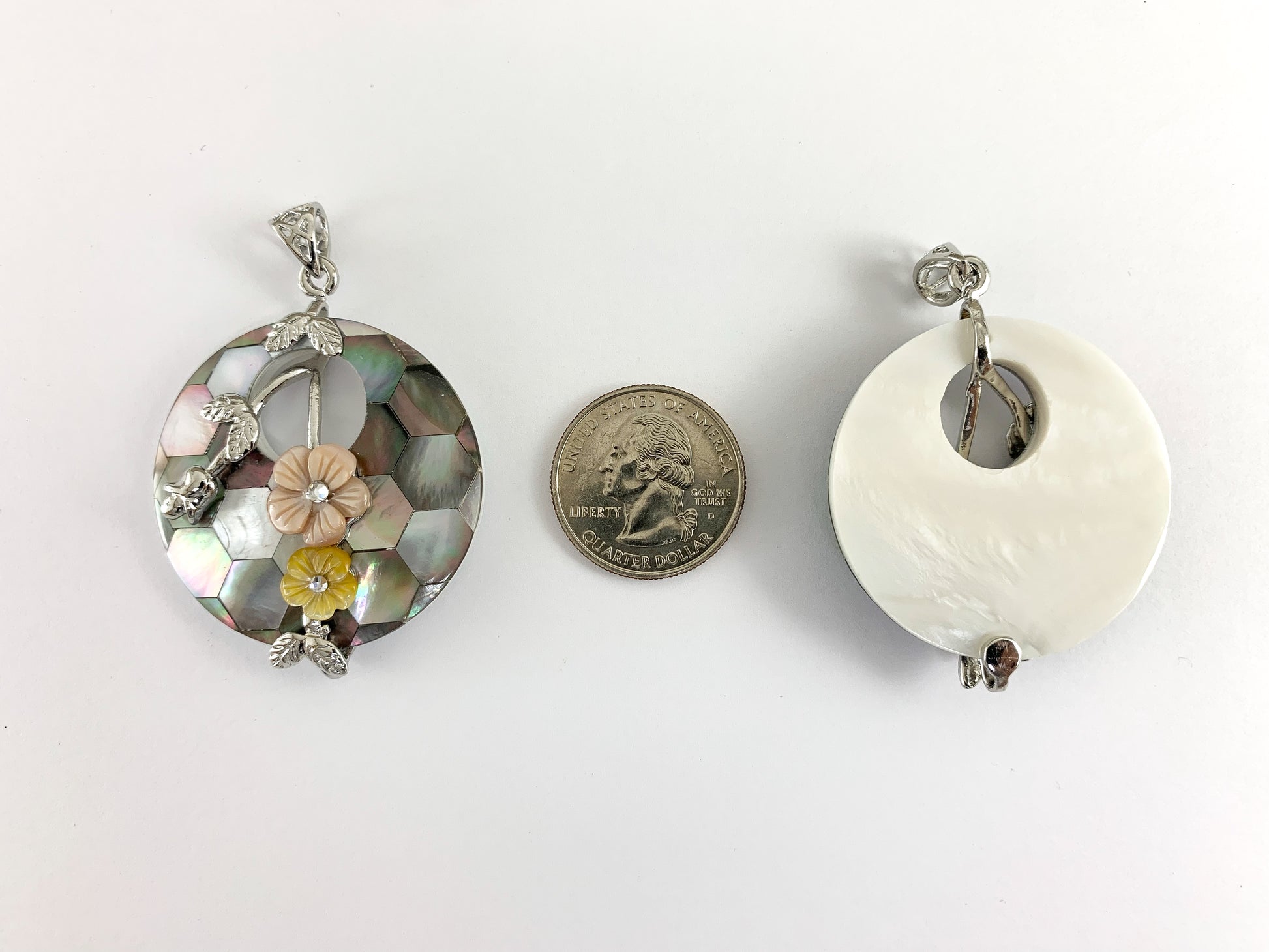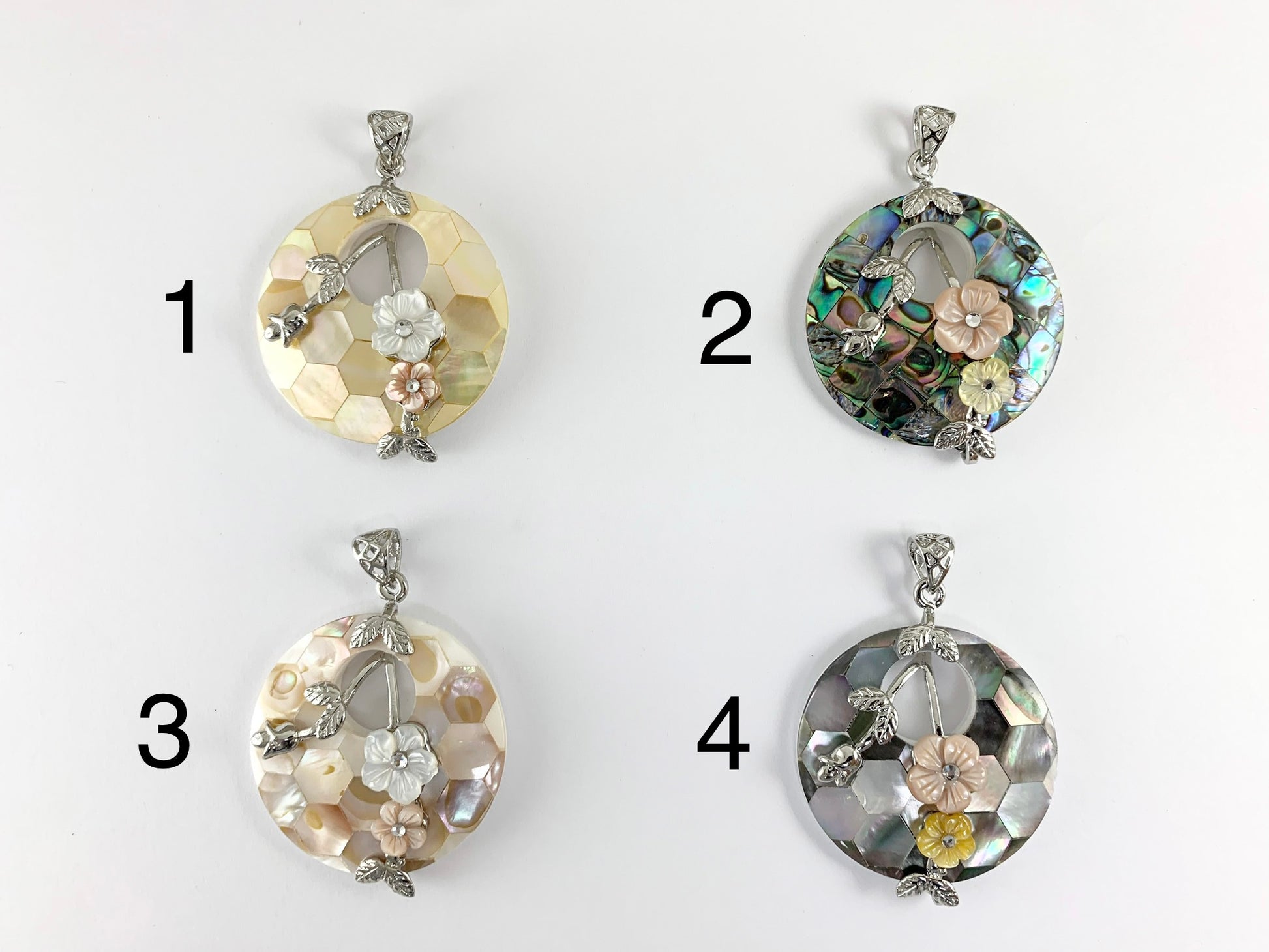 Abalone & Colorful Shell Coin Pendant with Flowers