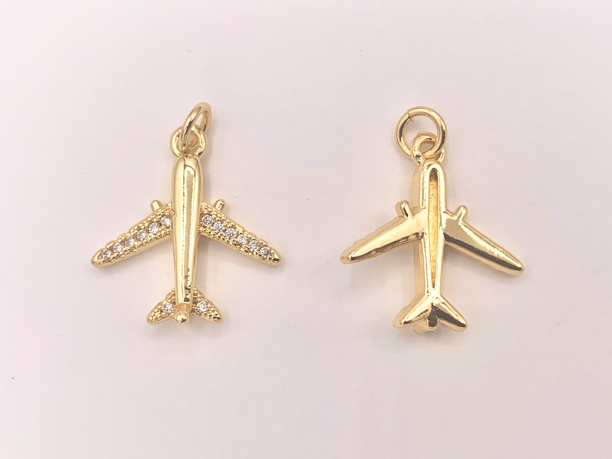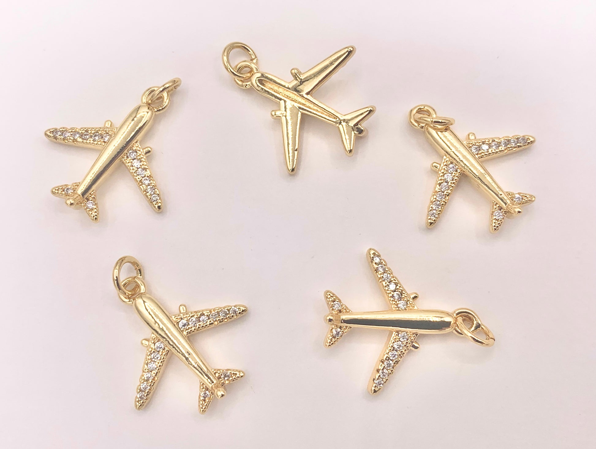 Airplane Charms in CZ Pave 18K Gold Plated Over Copper 10 PCS