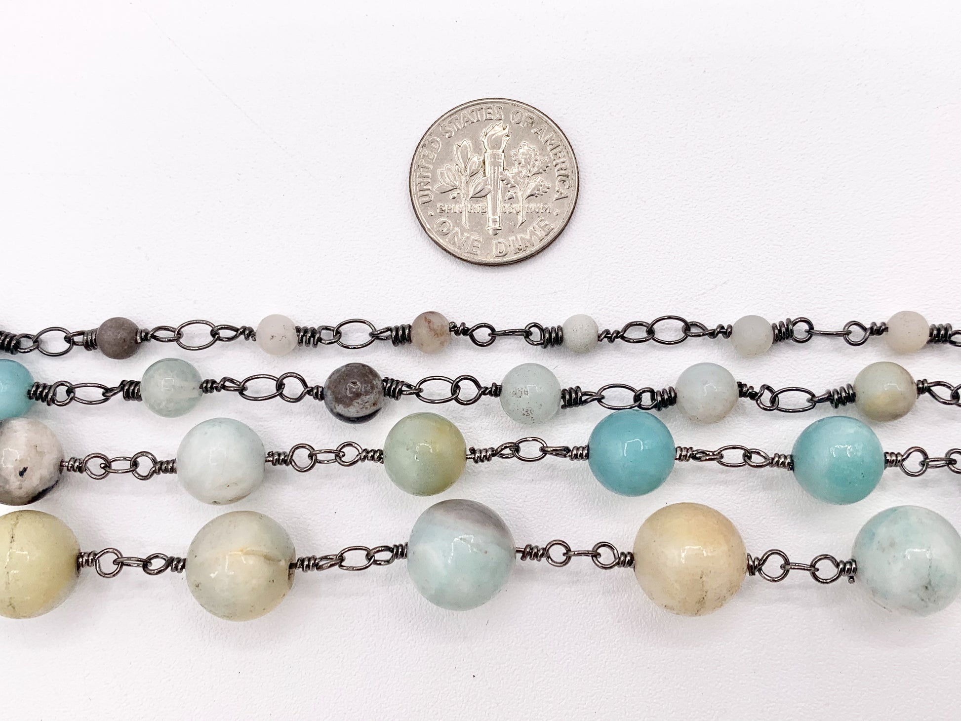 Amazonite Round Smooth Rosary Style Beaded Wired Chain With Gunmetal Wire By Spool 4mm 6mm 8mm 10mm