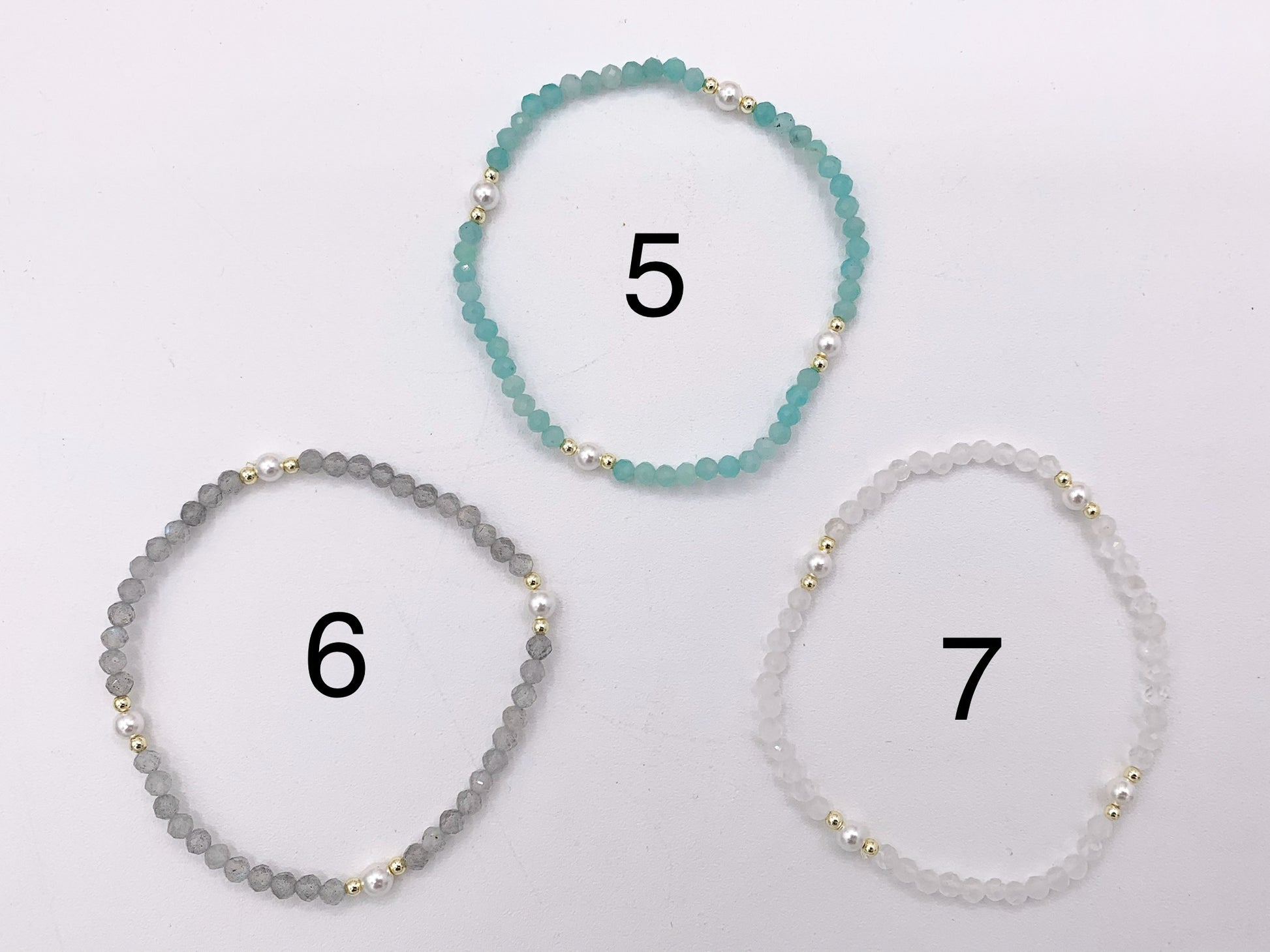 Assorted Stones With Pearls Dainty Stackable Stretchy Bracelet 1 piece Black Spinel, Terahertz, African Turquoise, Magnesite And More