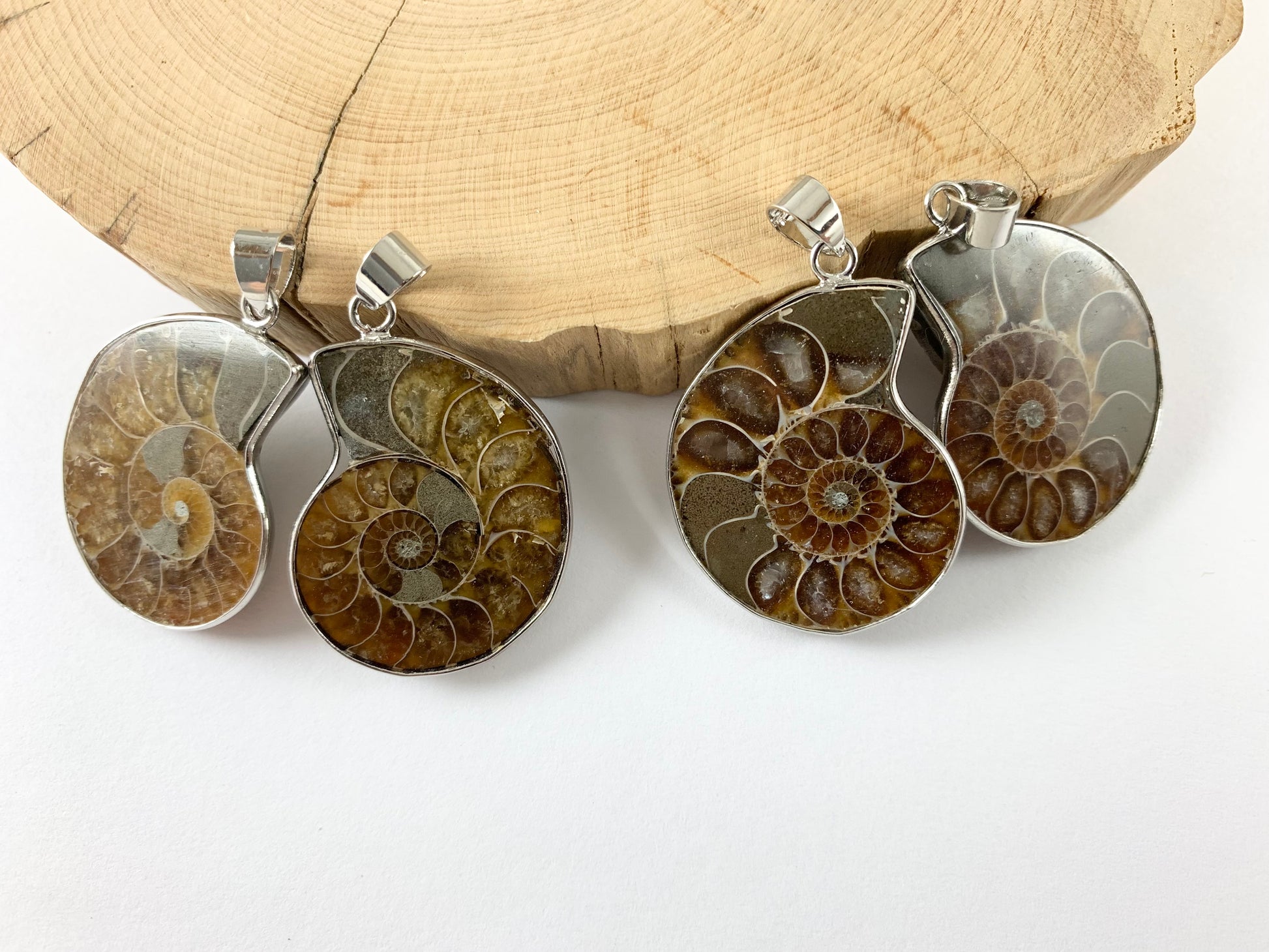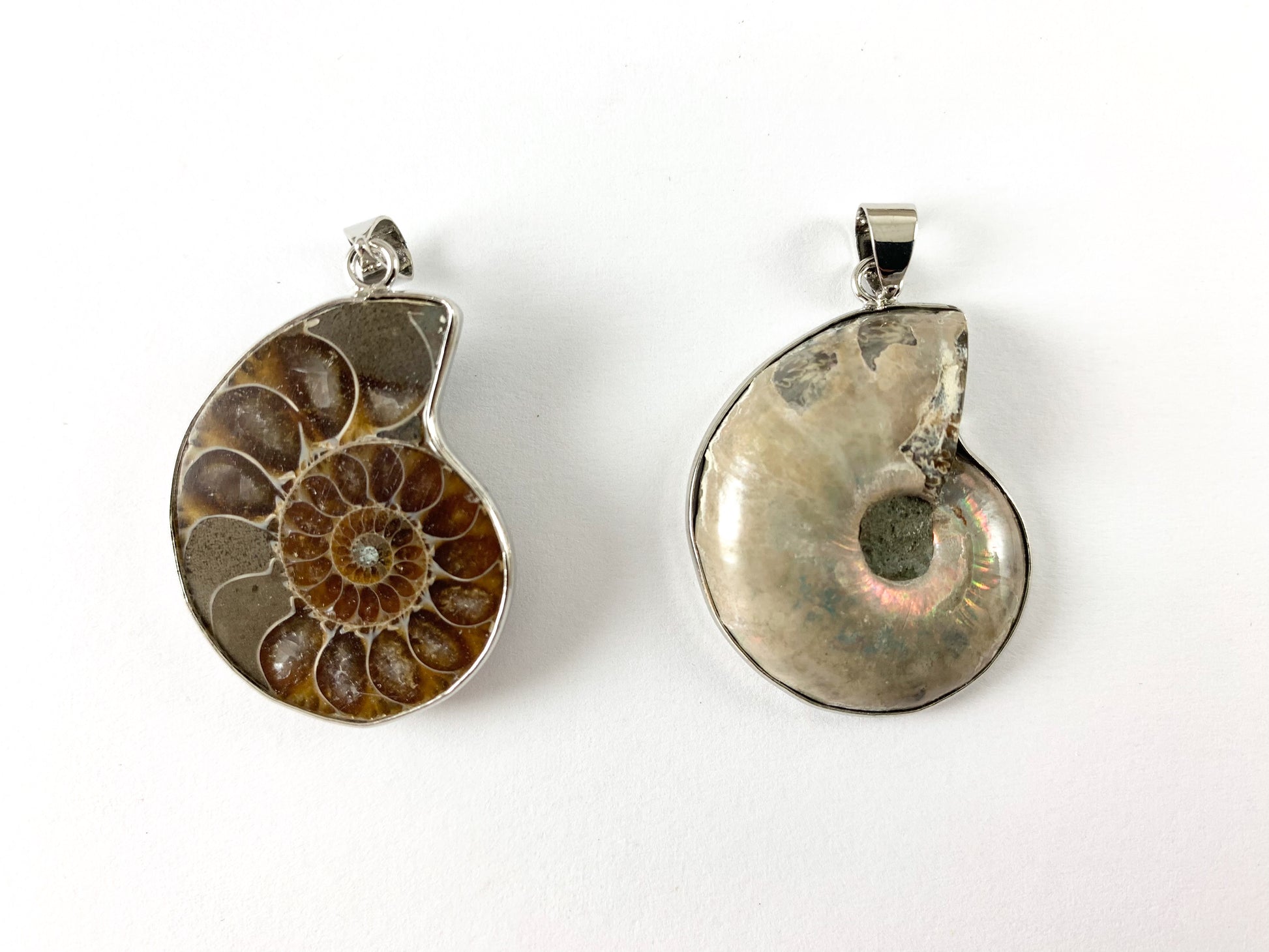 Beautiful Ancient Natural Ammonite Fossil Pair Pendant with Silver Trim, Friendship Pendant/Couple Pendant