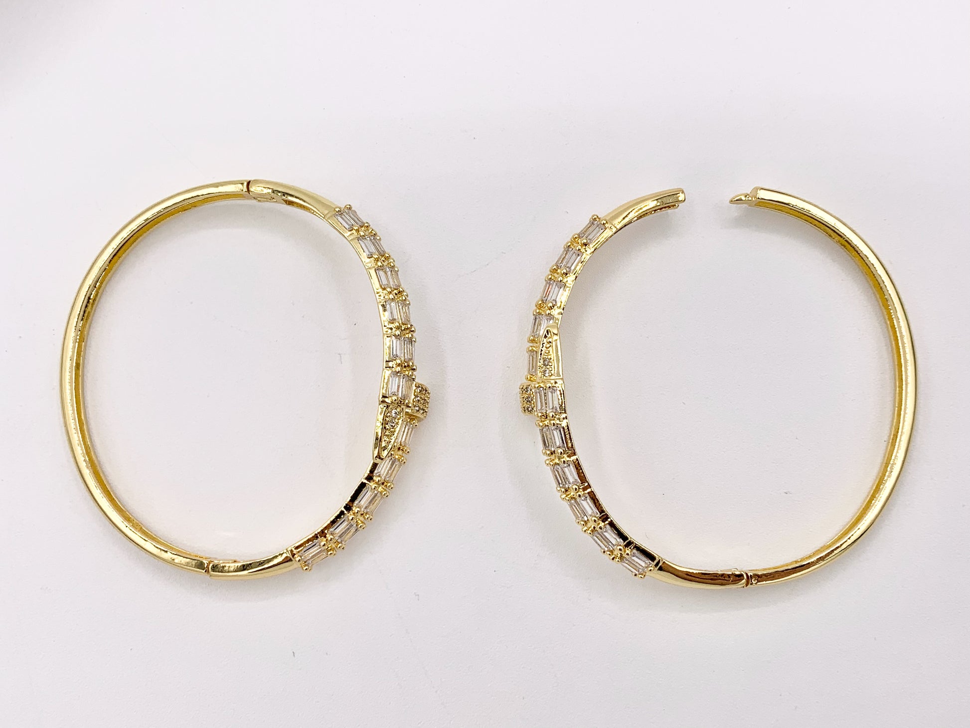 Beautiful Bypass Nail Spike Bracelets in Real Gold 18K Plated Copper Fancy Push Open Snap Bracelets. Please push down on the opening and pull open. Don't pull directly it will not budge.