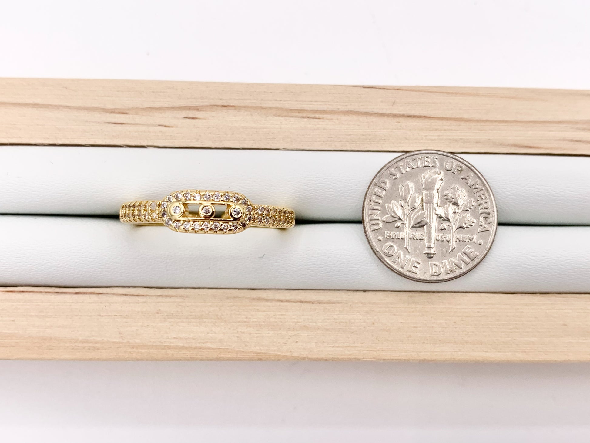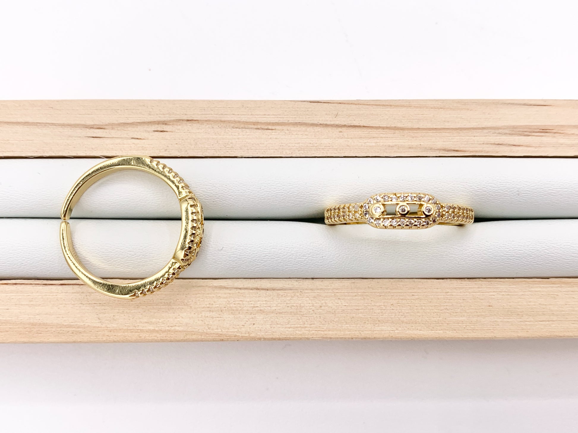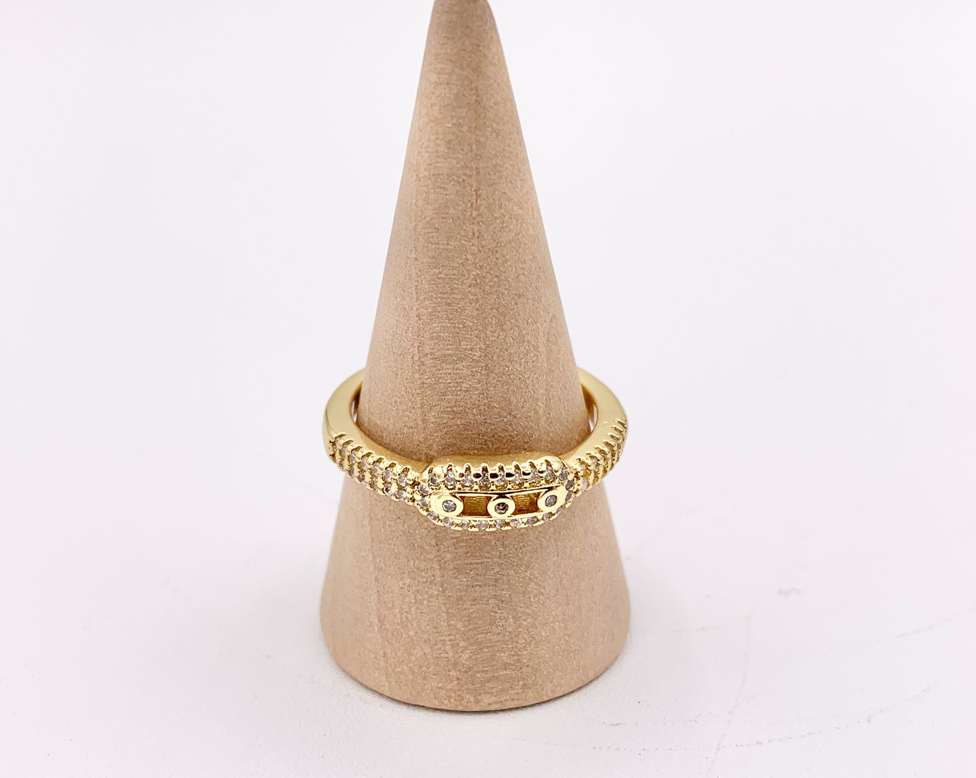 Beautiful CZ Pave Oval Link Adjustable Rings in 18K Gold Plated Copper
