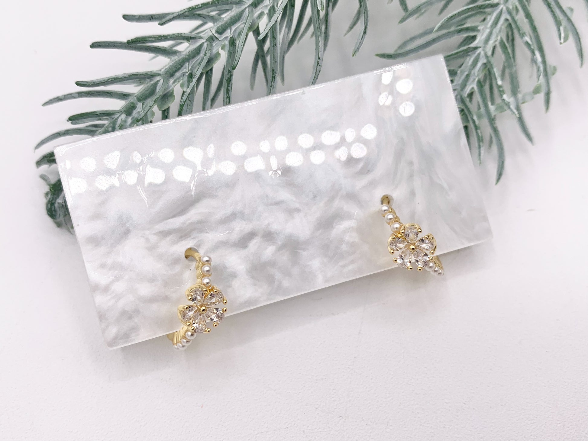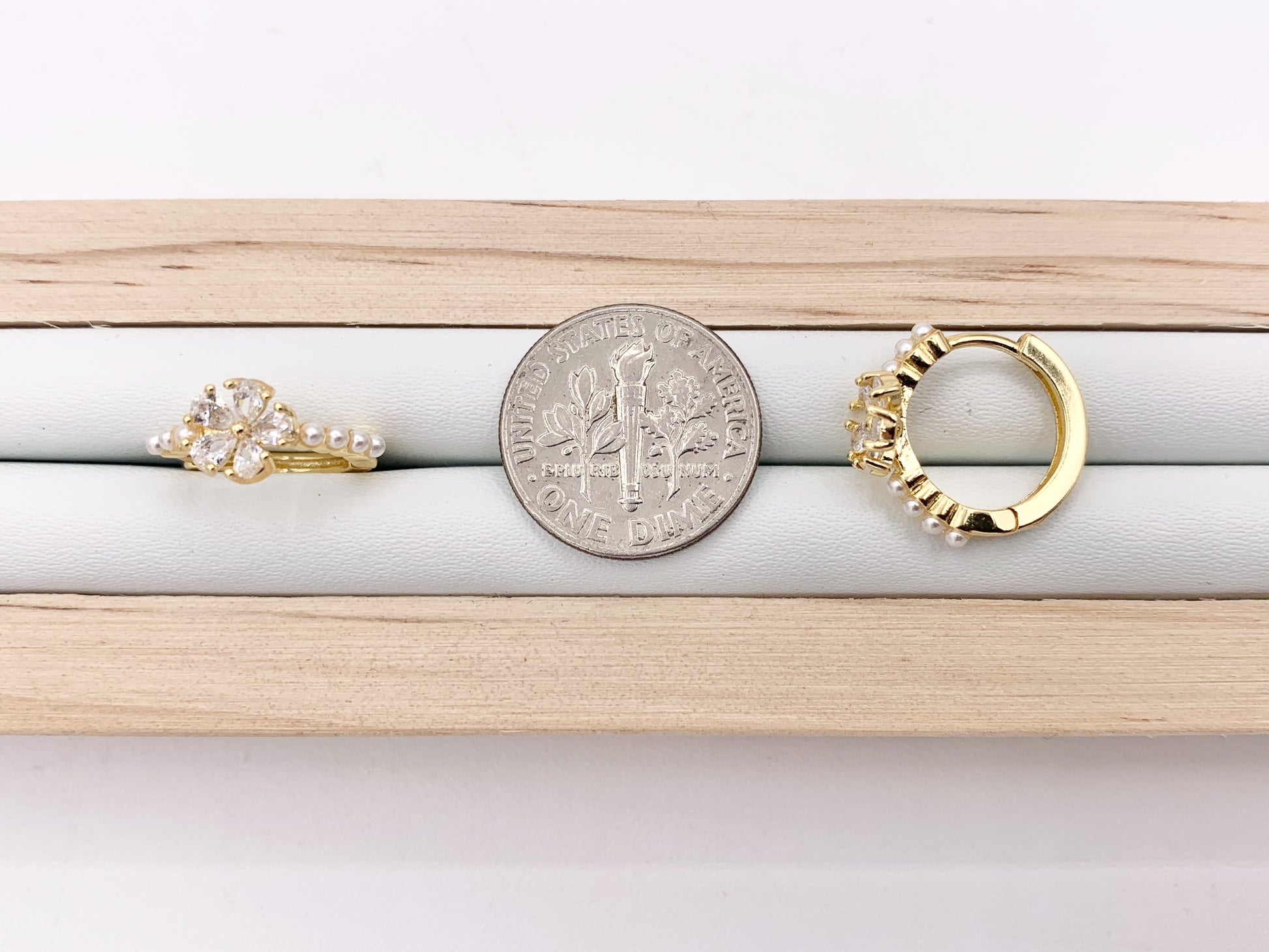 Beautiful Rhinestone Flower CZ Pave Daisy Earring Huggies With Pearls in Gold/Platinum 18K Plating over Copper 5PAIRS