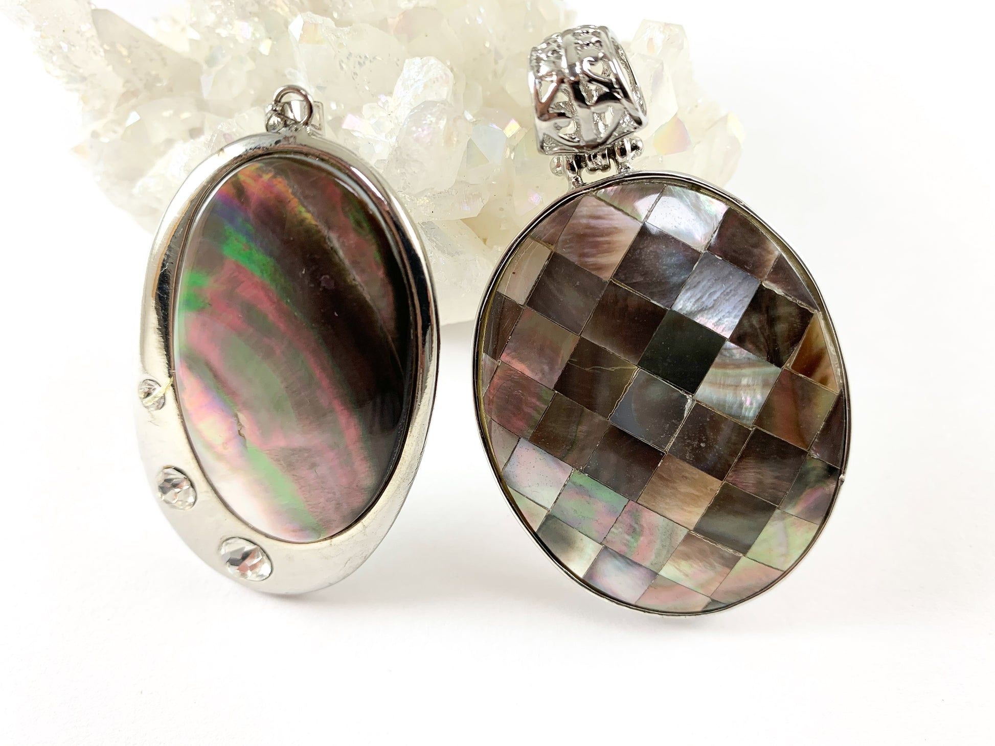 Black Lip Shell Oval Shape Silver Rhinestone Pendant For Jewelry Making and Craft