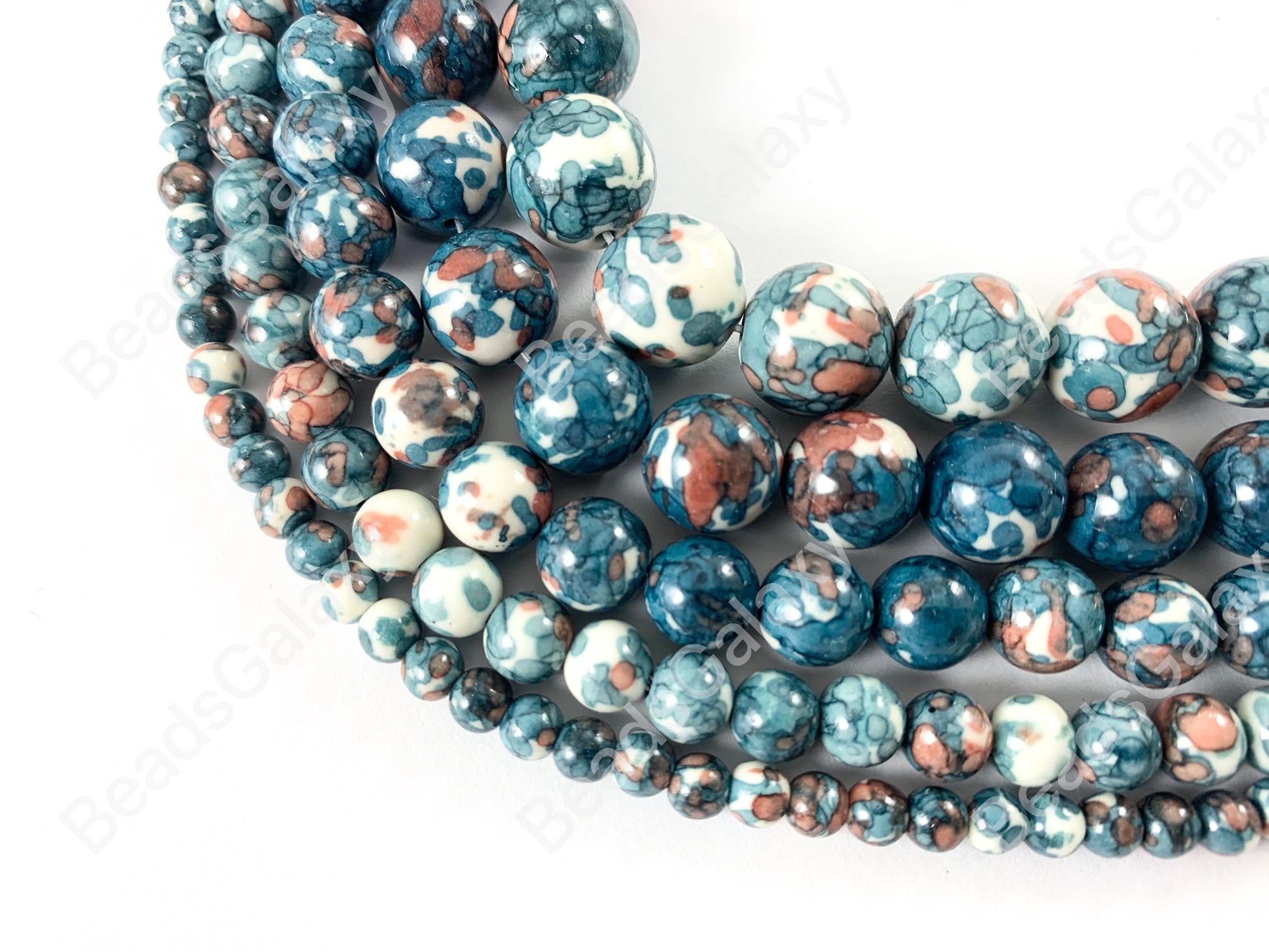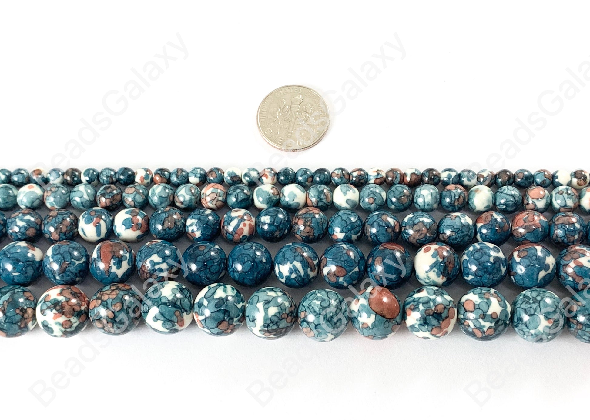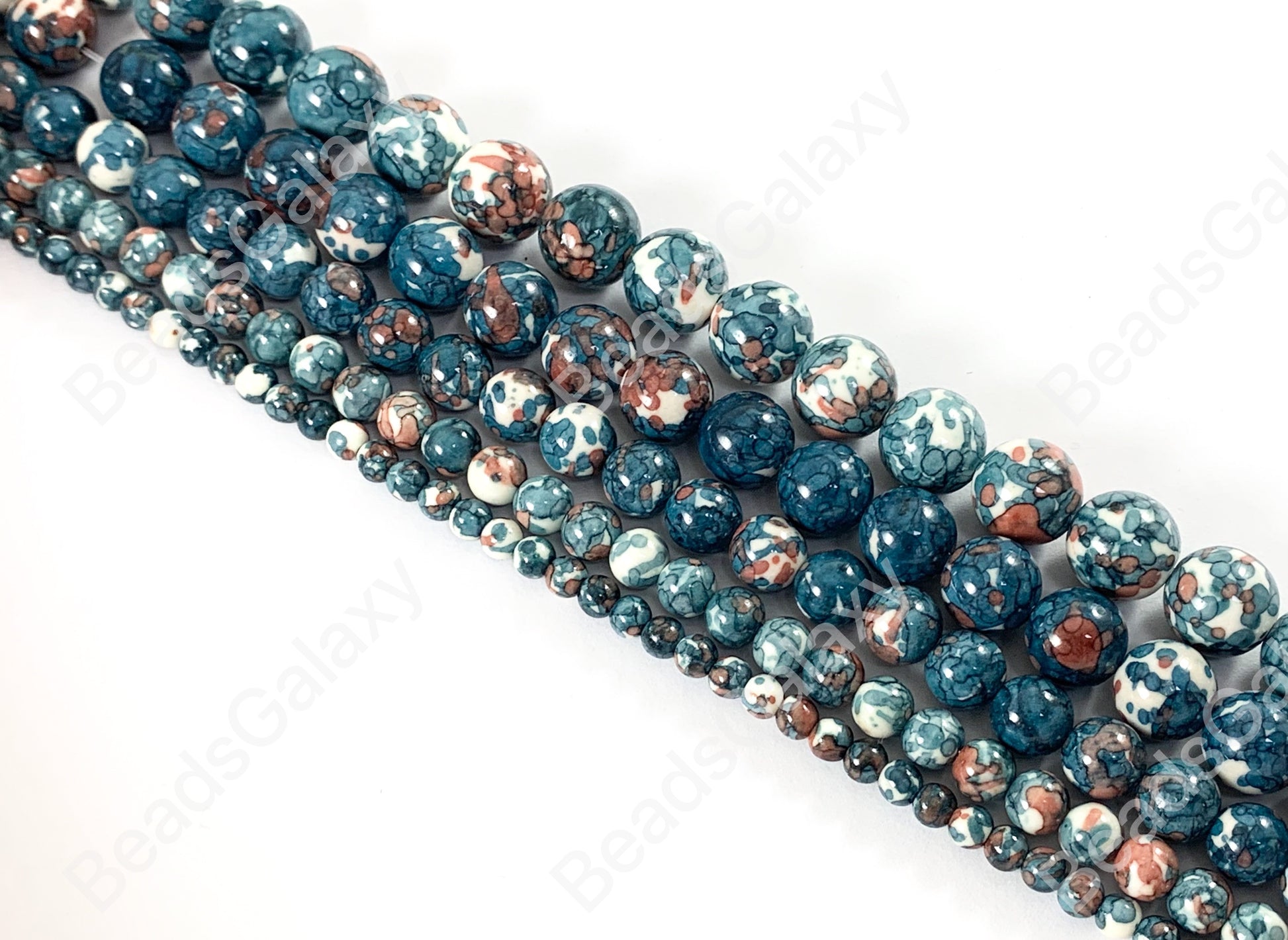 Blue Mosaic Composite Howlite Round Smooth Beads 6-12mm Around 15"