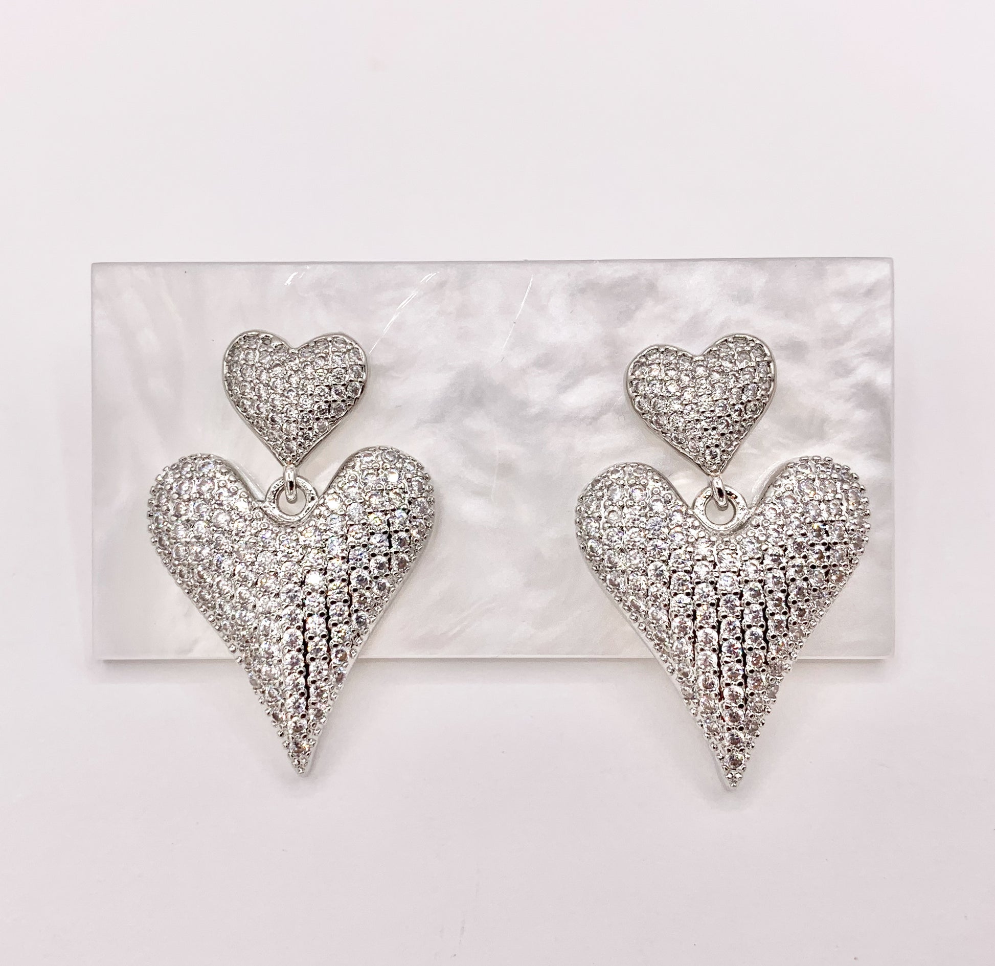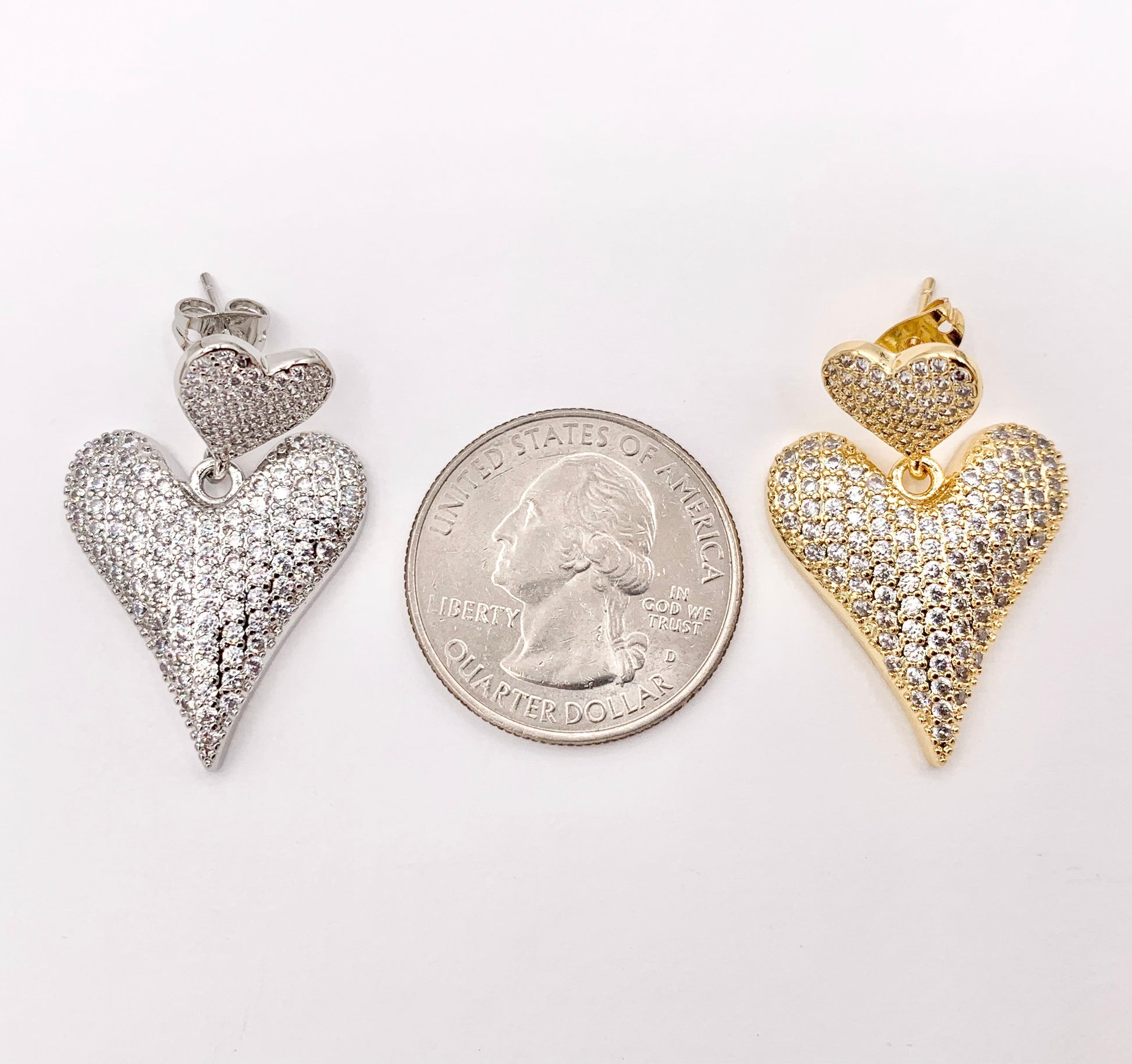 Bold Dangle Puffy Heart Earrings in Rhinestone CZ Pave Designed in 18K Gold or Silver Plated Copper 3 PAIRS