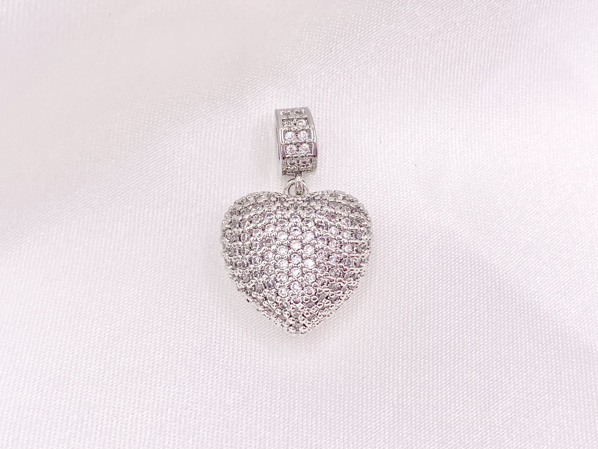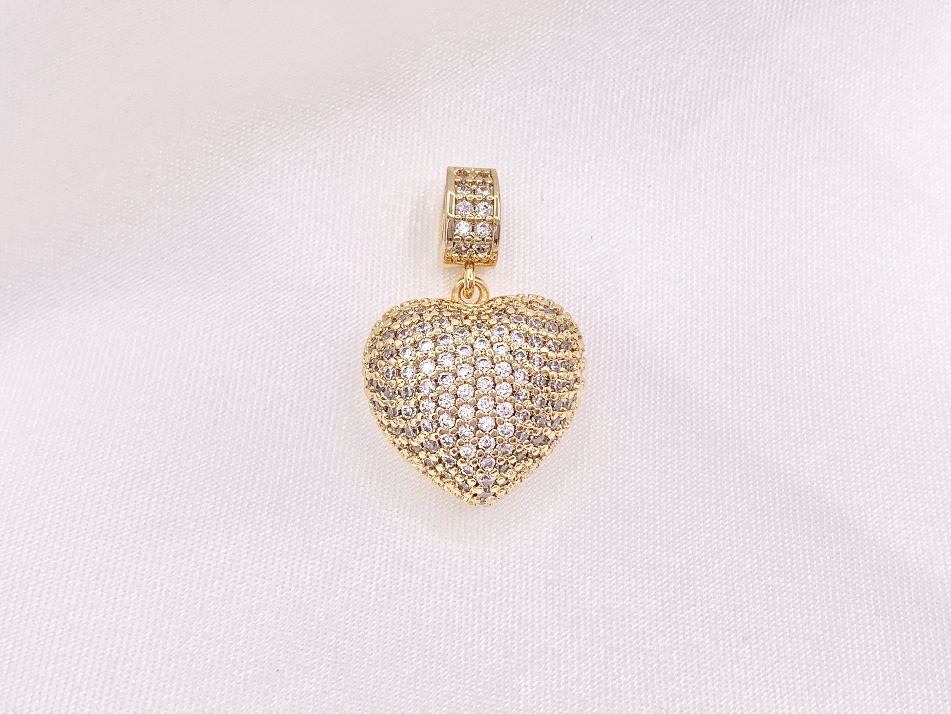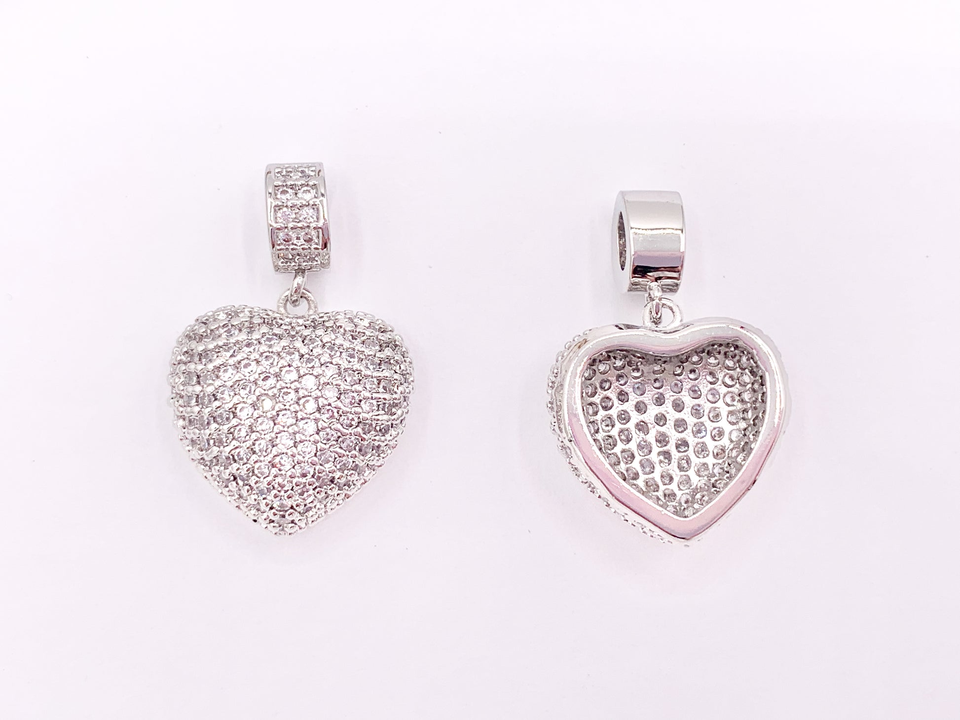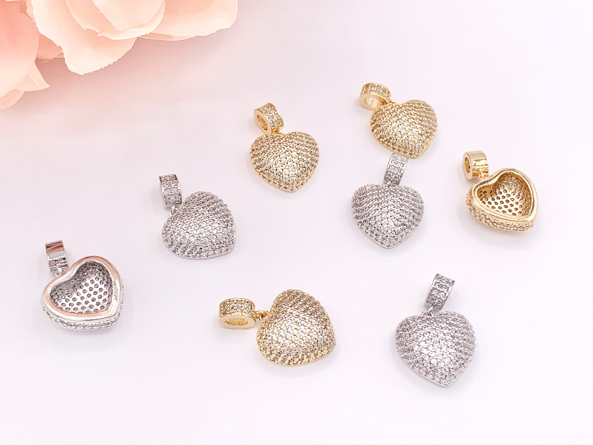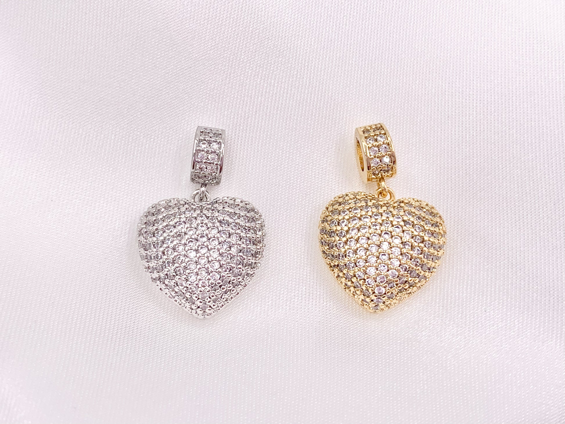 Bold Statement Heart Pendant Charms Rhinestone CZ Pave Designed in 18K Gold or Silver Plated Copper