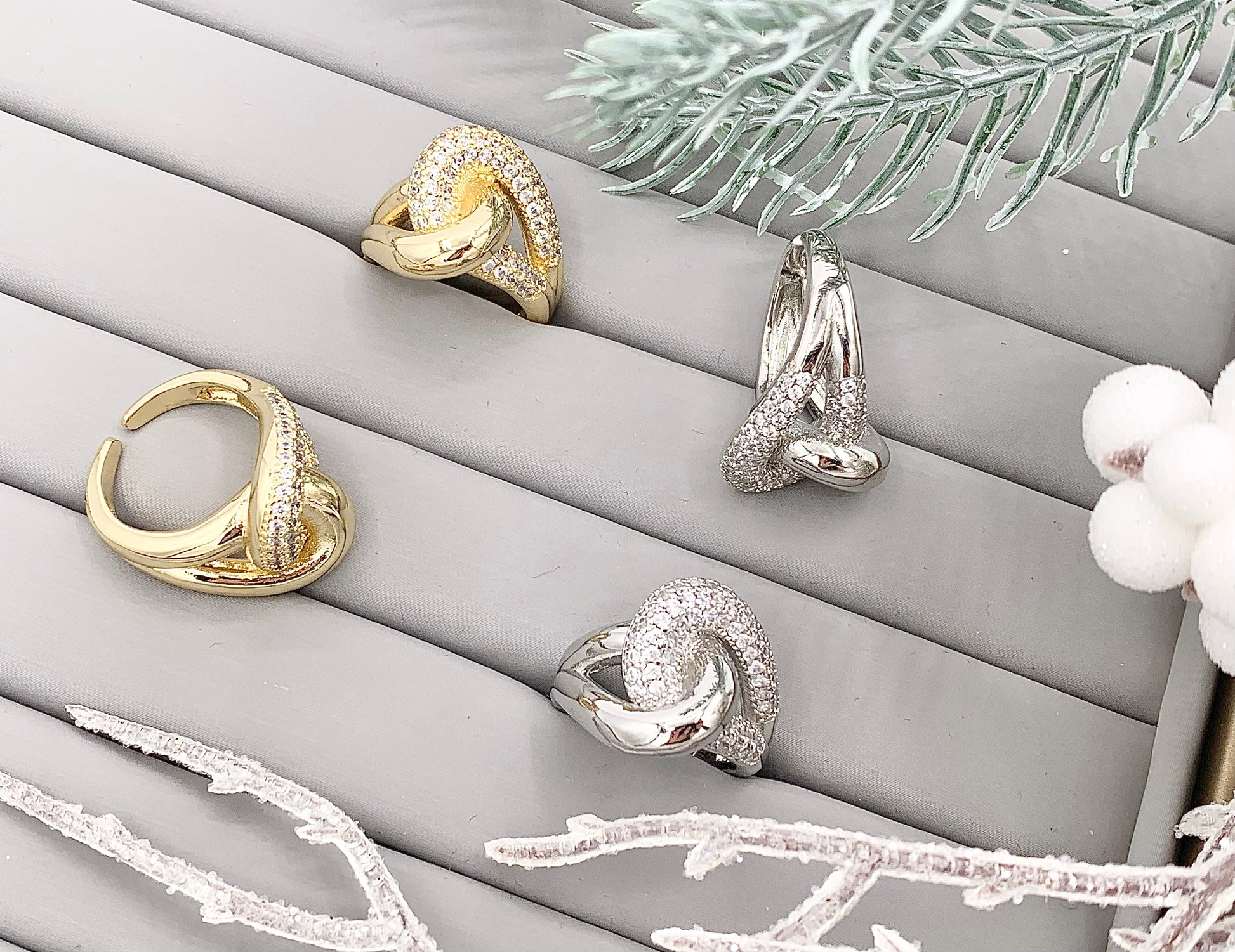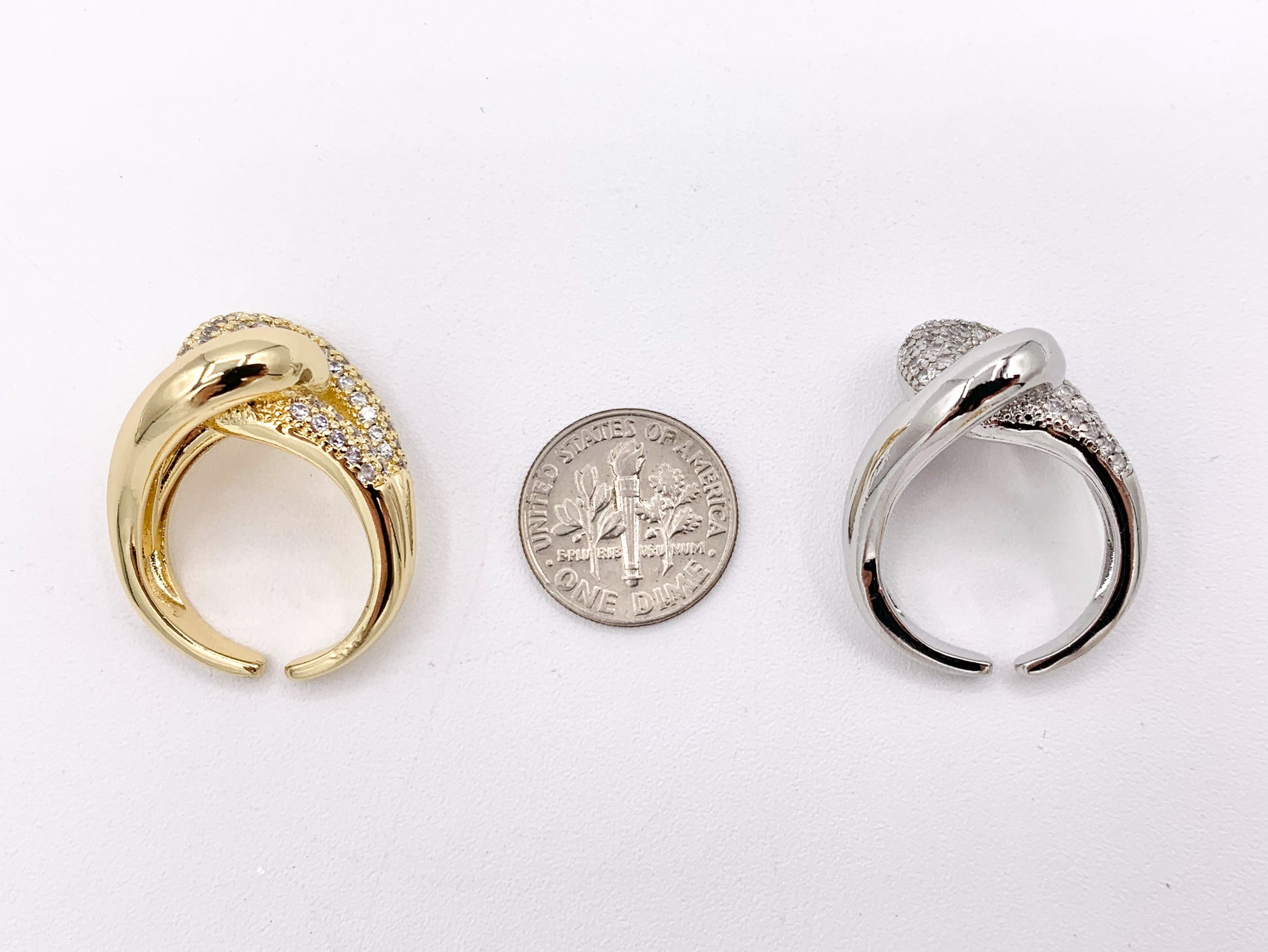 Bold Statement Large Thick Interlock CZ Pave Ring in 18K Real Gold/Platinum Plated Copper 4 pcs
