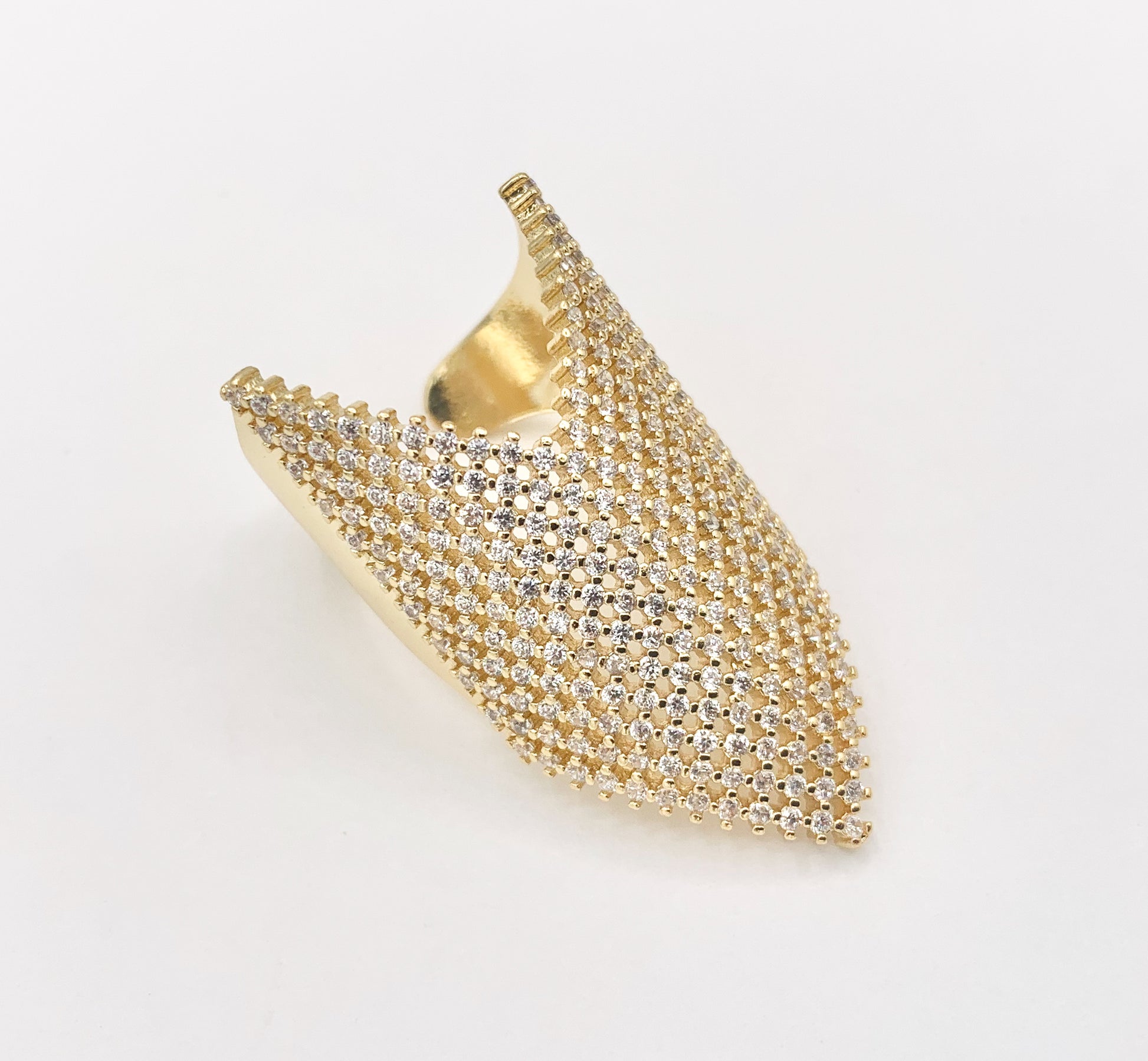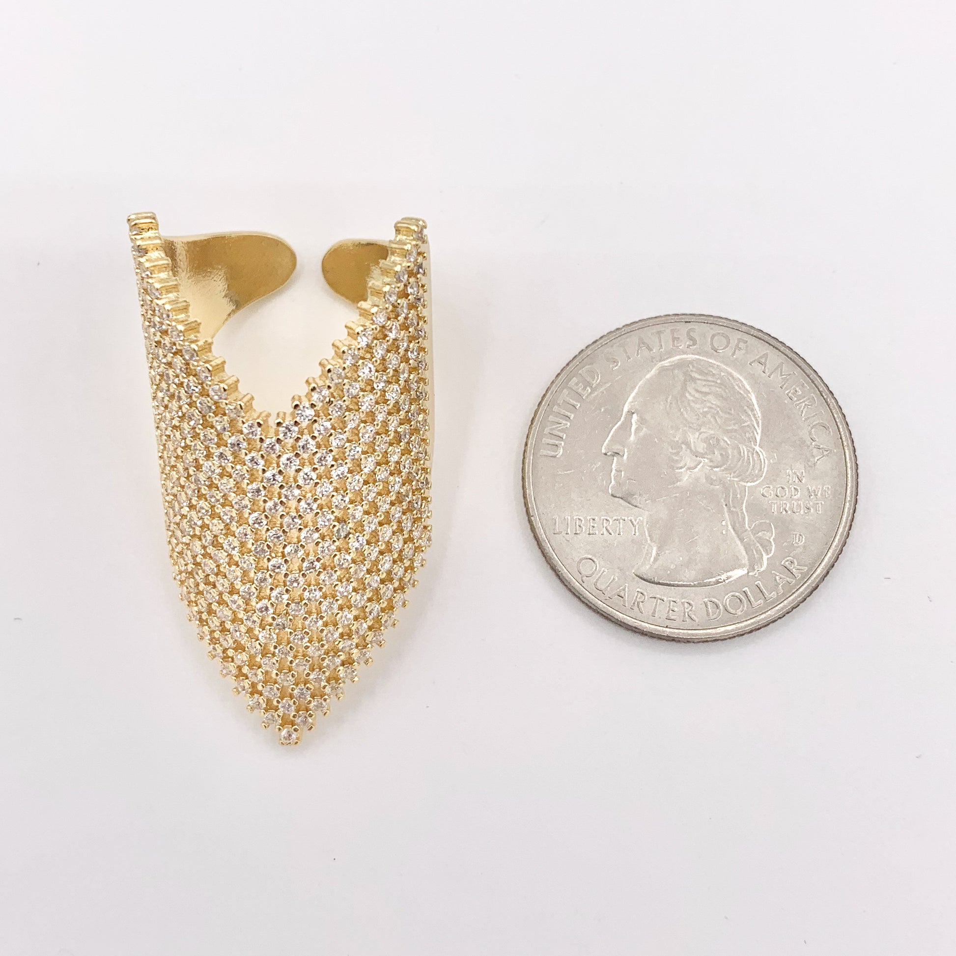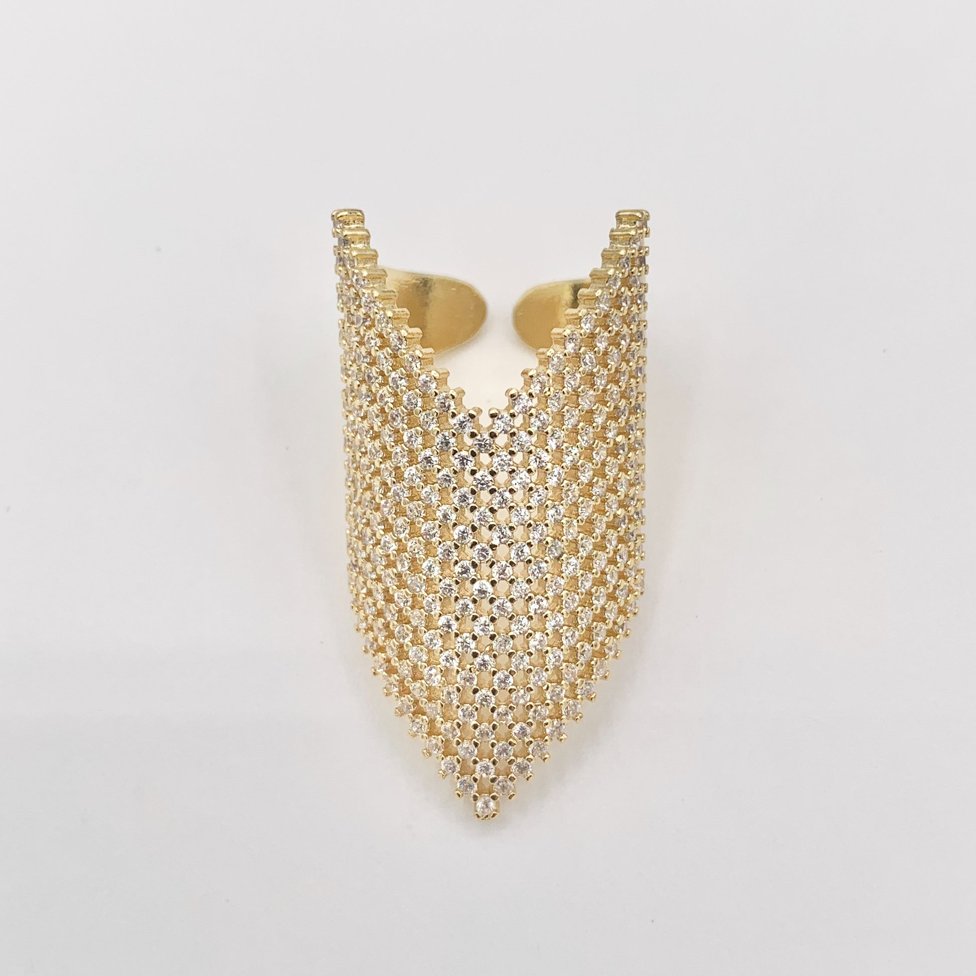 Chevron V Shaped Bulky Ring in CZ Pave Real Gold 18K Plated Copper Adjustable Ring 3 PCS