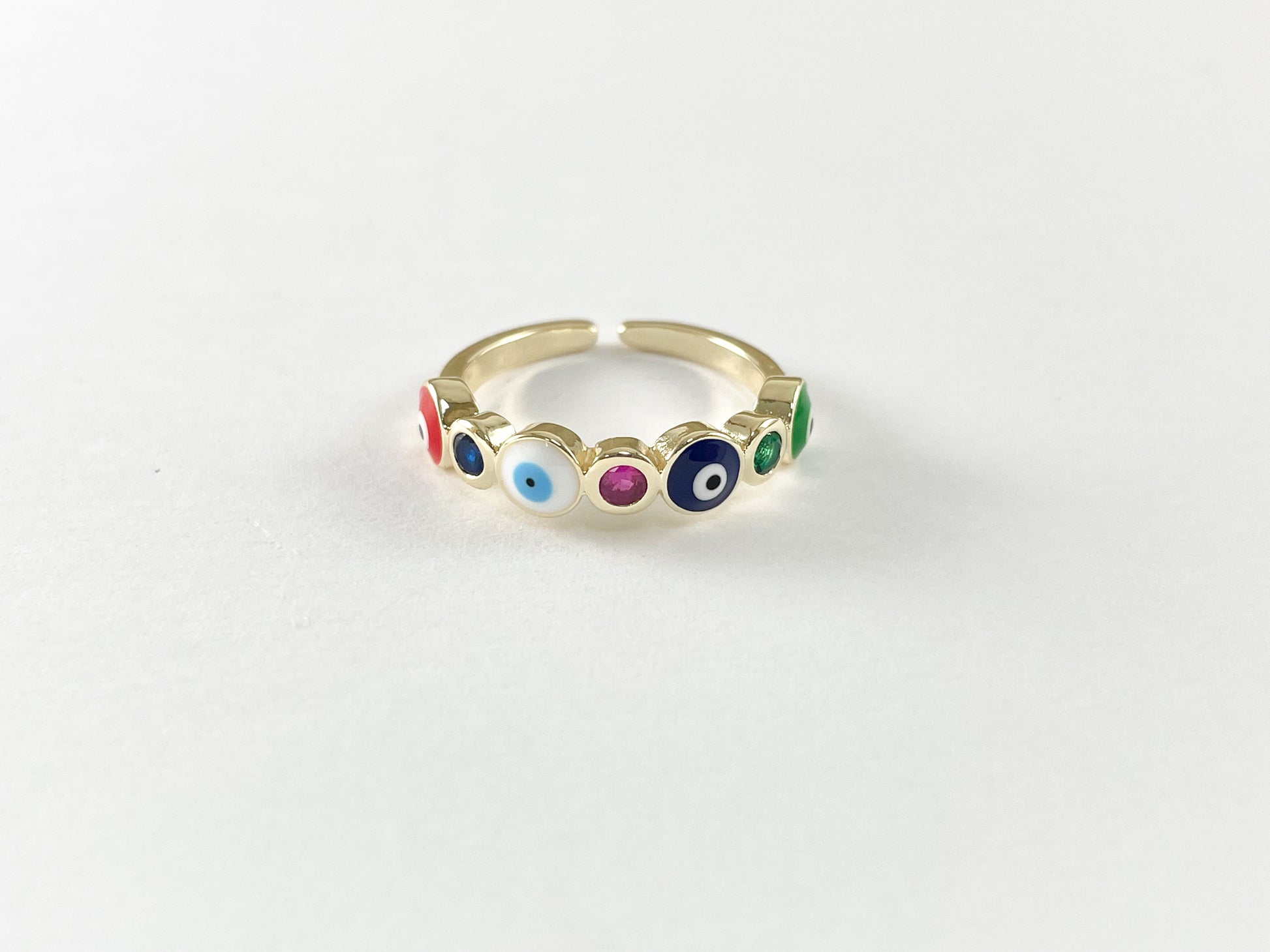 Colorful Enamel 18K Gold Plated Multi Copper CZ Pave Evil Eye Adjustable Ring 4pcs