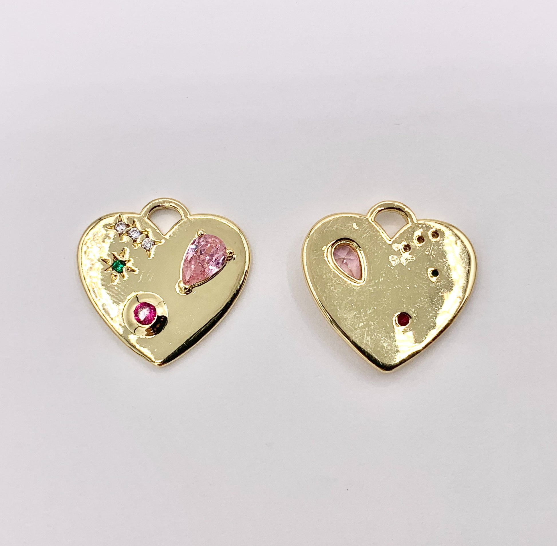 Dainty Rhinestone Heart Charm Pendants in CZ Pave 18K Gold Plated Copper