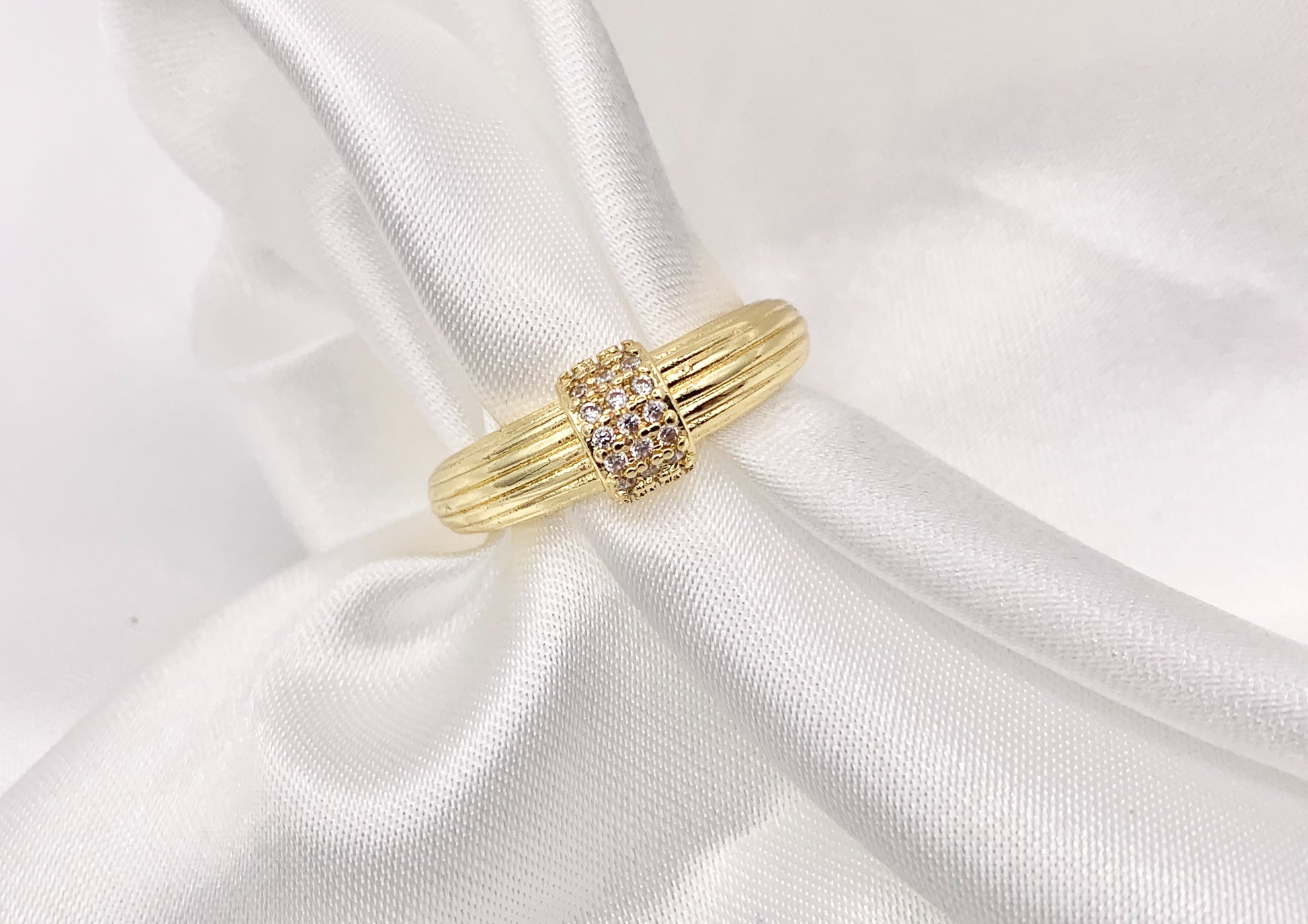 Crescent Signet Ring in Cubic Zirconia Rhinestone Adjustable Signet Rings in 18K Gold Plated Copper
