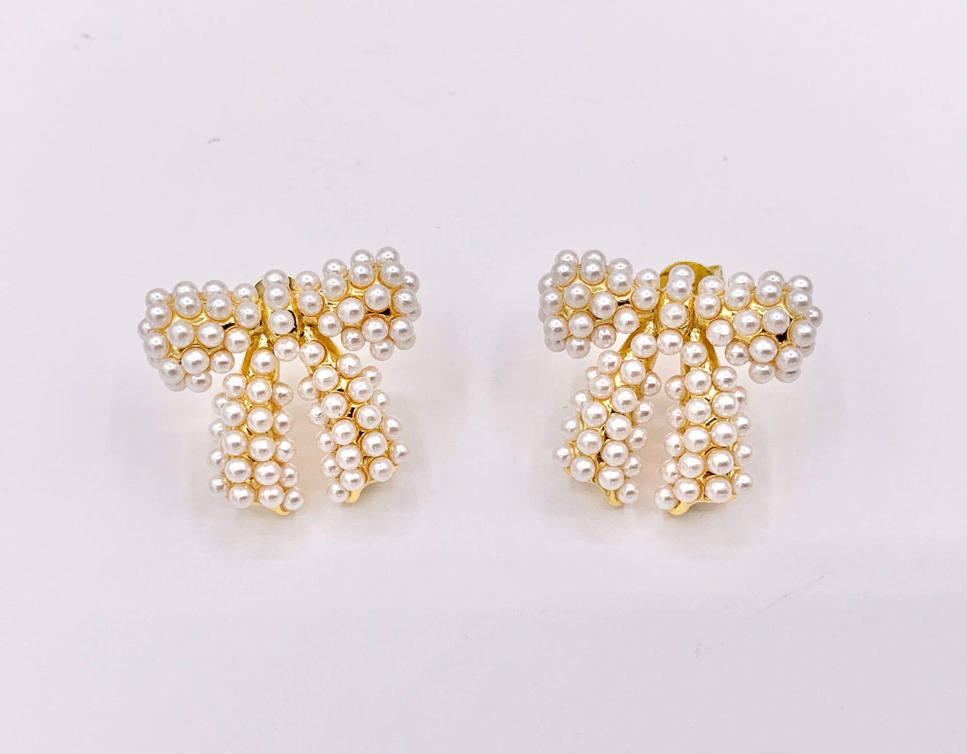 Cute Bowtie Studs with Pearls and CZ Pave in 18K Gold plated Copper